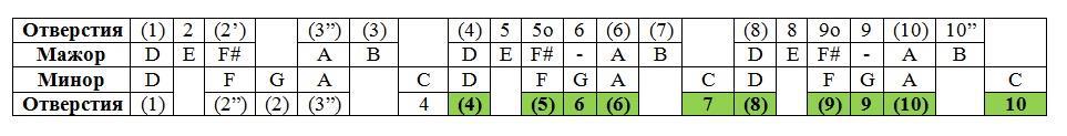 Только вот нет у нас одиннадцатого отверстия, поэтому гамма заканчивается на ноте С.