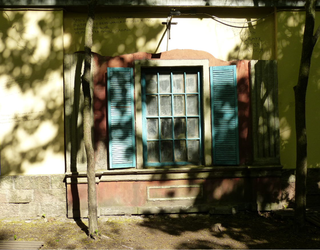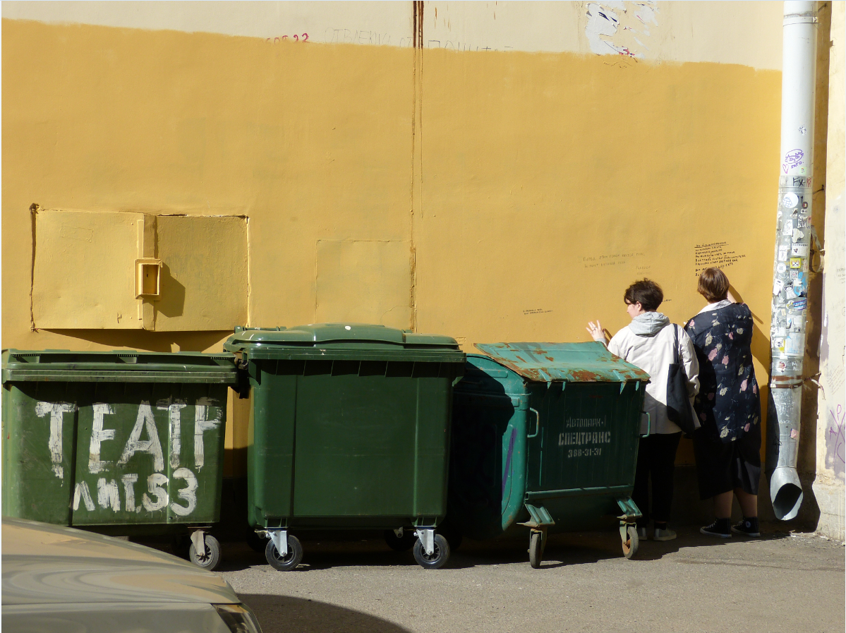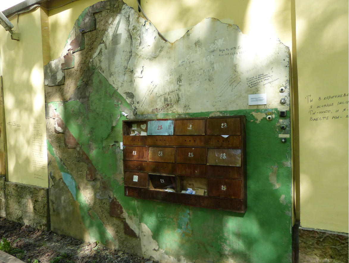 В Москве уже мало где пишут стихи на стенах, а вот в данном питерском дворике это стало традицией. Фанаты творчества Ахматовой и Гумилёва ежедневно добавляют новые строки. Местные власти периодически всё это закрашивают, но любители поэзии тут же пишут что-то новое.