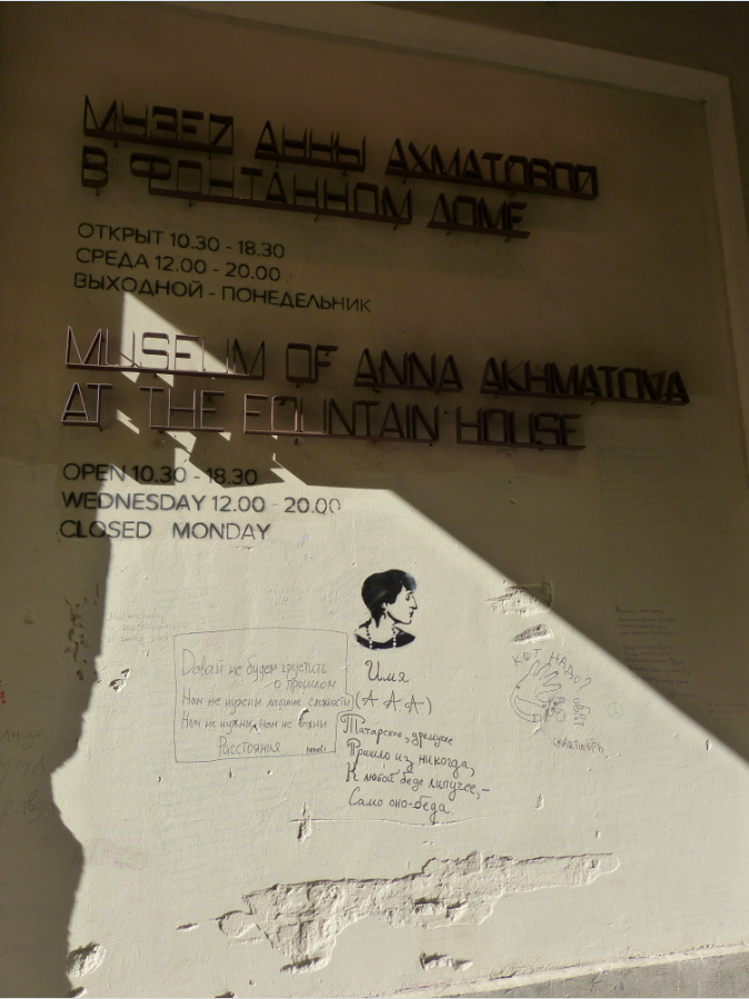 Рядом на стене есть граффити по мотивам известнейшего портрета поэтессы, написанного Натаном Исаевичем Альтманом в 1914 году.