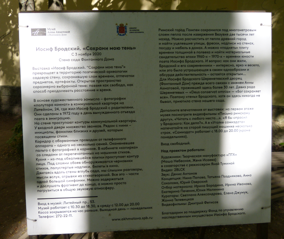 В самом саду увидели инсталляцию, посвящённую Иосифу Бродскому.