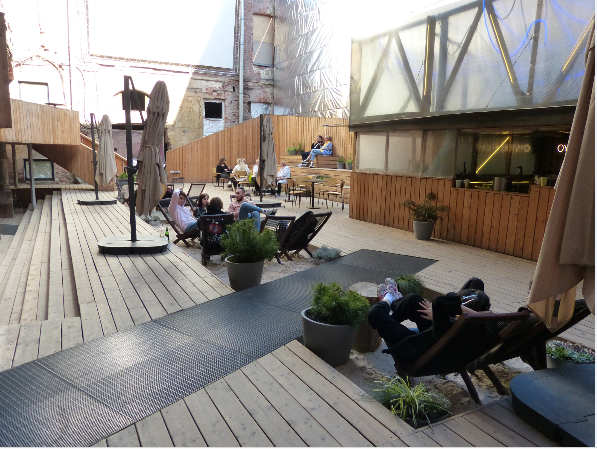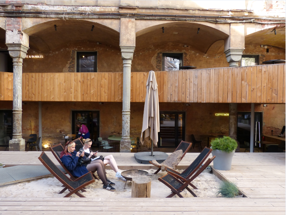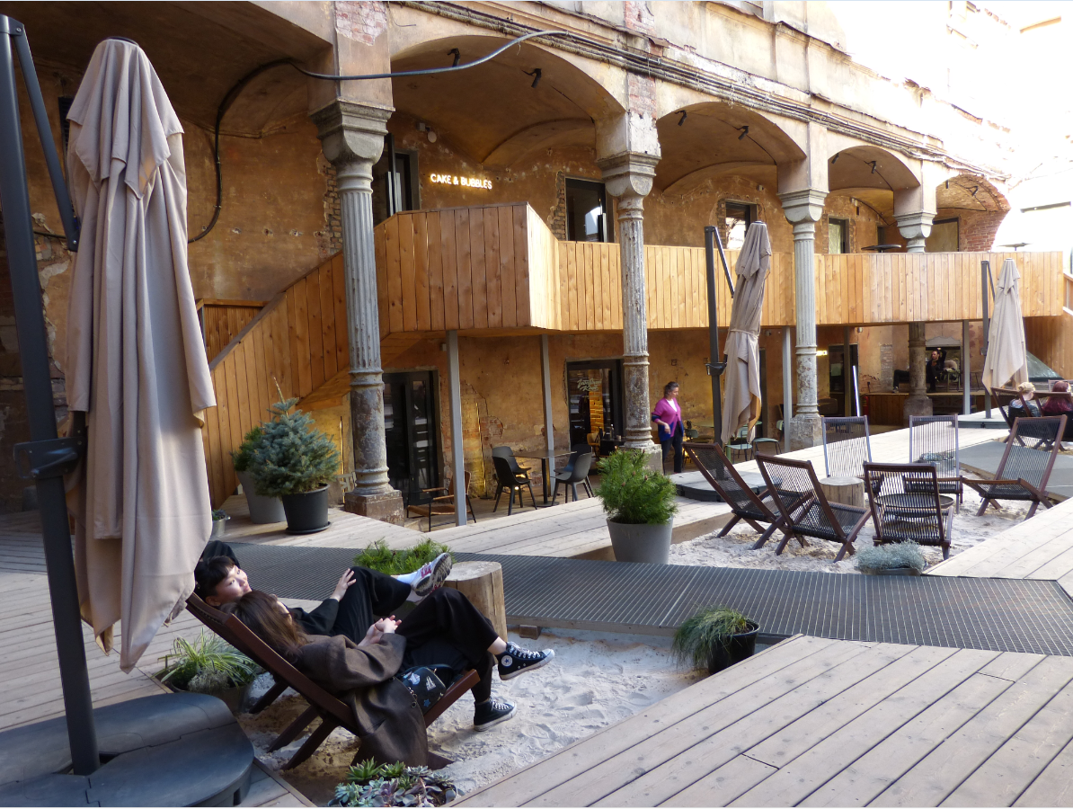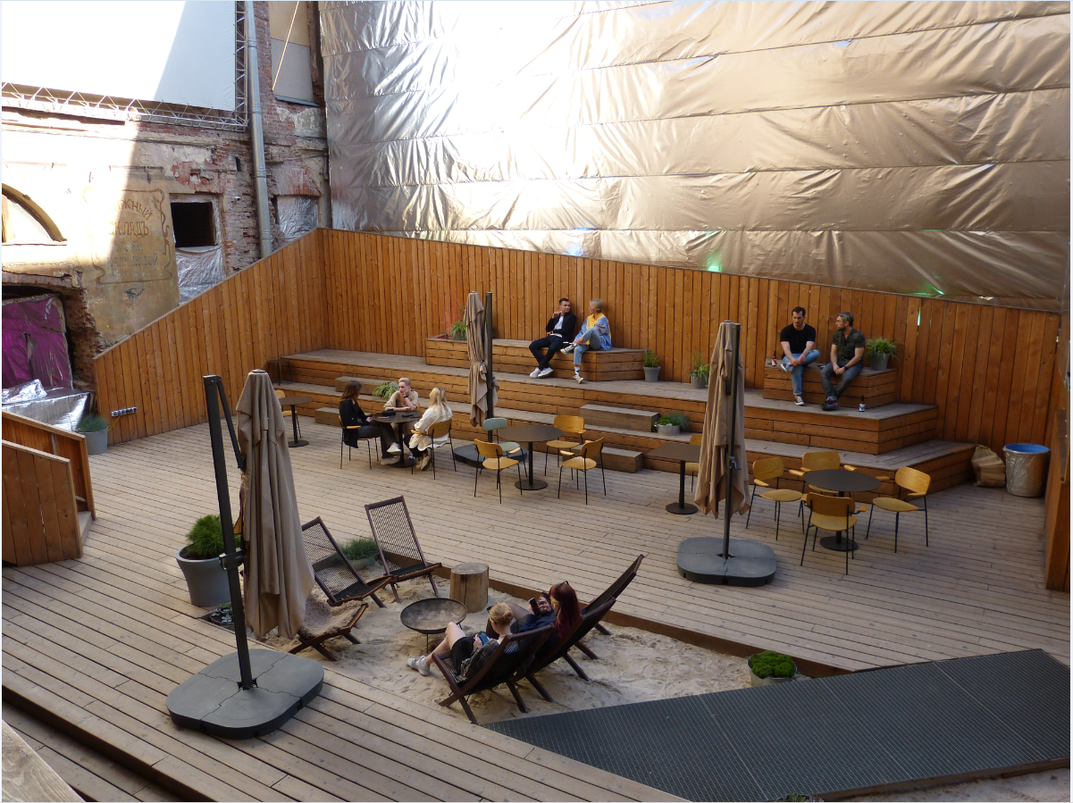 Оказалось, что это культурное пространство "Третье место", которое заняло внутренний дворик бывшего особняка Лопухиных и Нарышкиных. Тут есть кафе, ресторан, галерея искусства и магазин. Через какое-то время к ним присоединится отель "Faces". Забавное местечко, особенно в текущем состоянии!