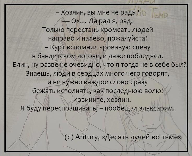Эви помотала головой, с трудом оторвавшись от инфантилизирующего взгляда эльксарима, и сделав большой глоток горячего чая, закашлялась. Картинка из кино вдруг всё-таки совместилась с реальностью её самосознания.
