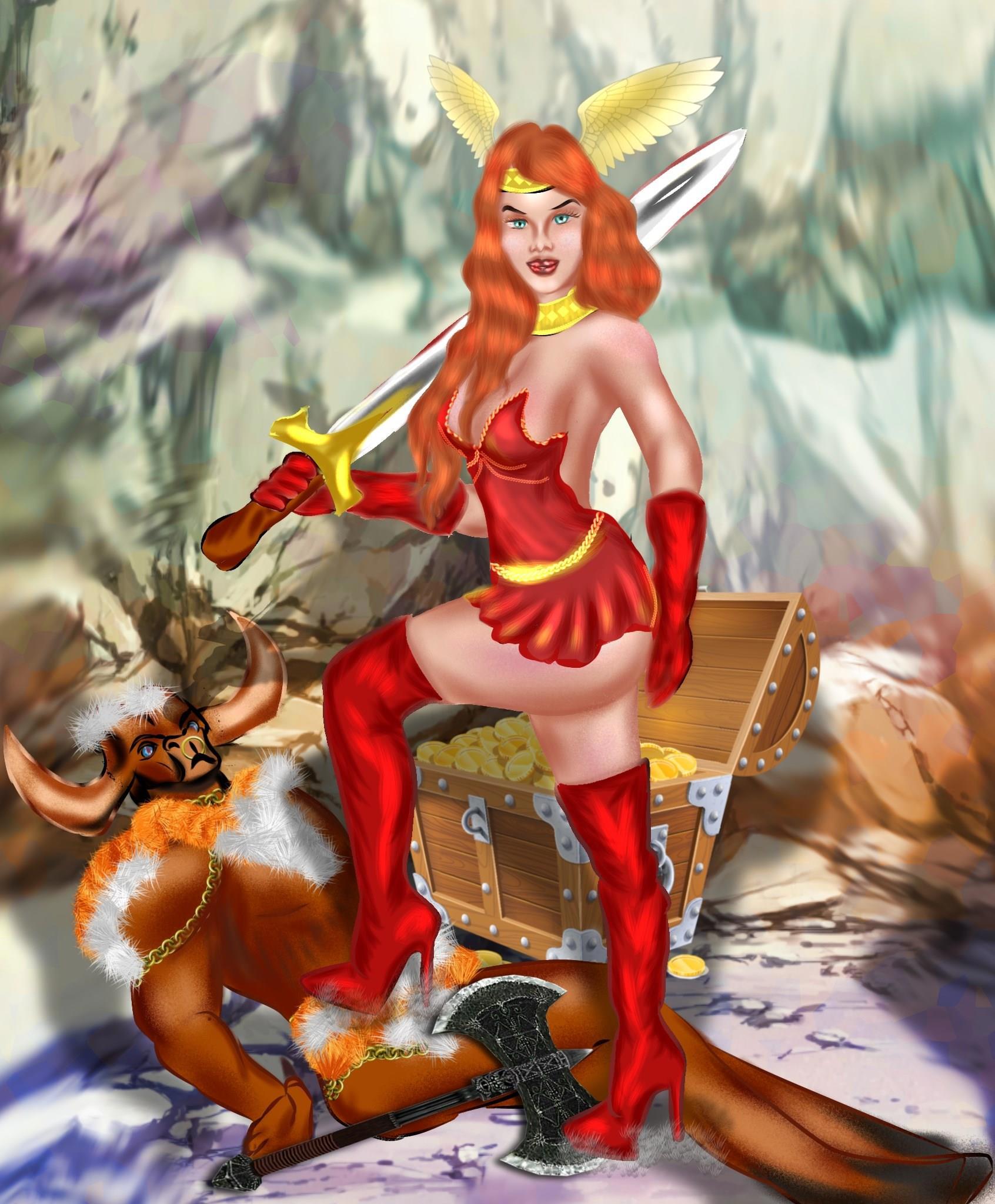 Если тыкнуть на картинку, то можно рассмотреть в большем масштабе. А ещё там же найти версию 18+ с обнажённой героиней.