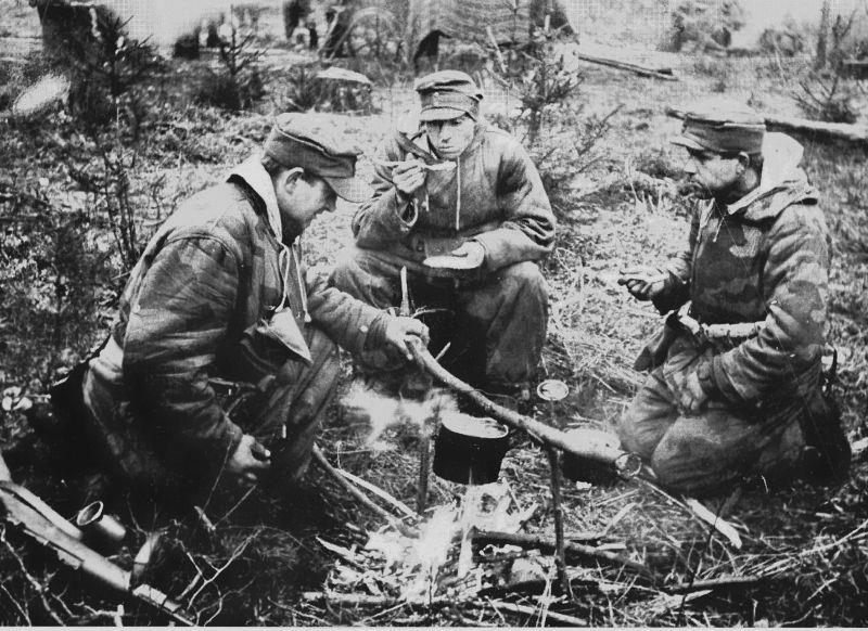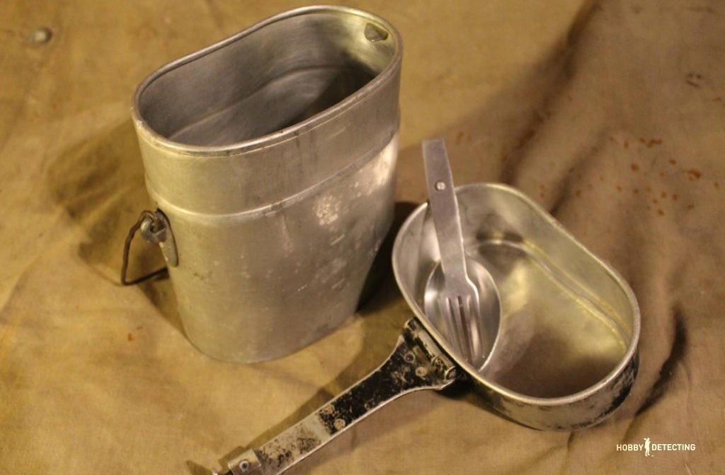Немецкий котелок с вилколожкой и крышкой- сковородкой. Советские практически такие же были в СА только вилколожки не было и потому из котелка убрали выступ для ее крепежа в сборе.