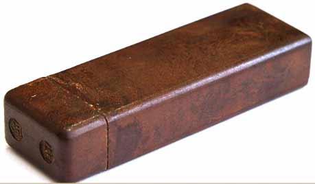 Коробочка из эбонита - лозатинница - для обработки кожи при попадании отравляющих веществ. Практически в натуральную величину. Попадаются везде и часть - на фронт их везли, а не пользовались.