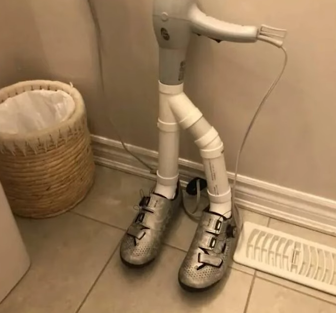 Во время дождливой недели возникает проблема с быстрой сушкой обуви. При помощи одного фена и парочкой пластиковых труб эта проблема решается.