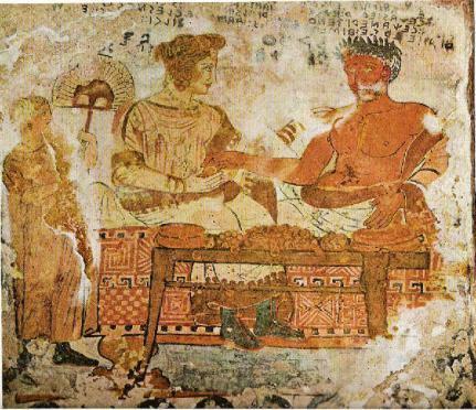 Сцена с изображением банкета в "Гробнице Щитов, Тарквинии. ок. III в. до н.э.