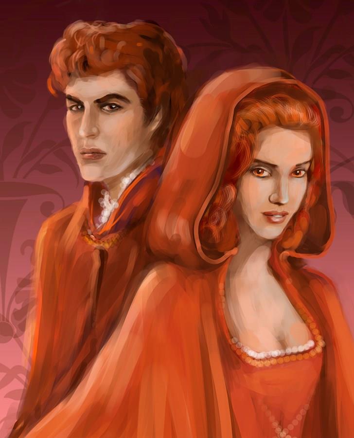 На обоих рисунках изображены соправители одного из трех великих кланов оборотней — лисы, брат и сестра Менея и Саранде