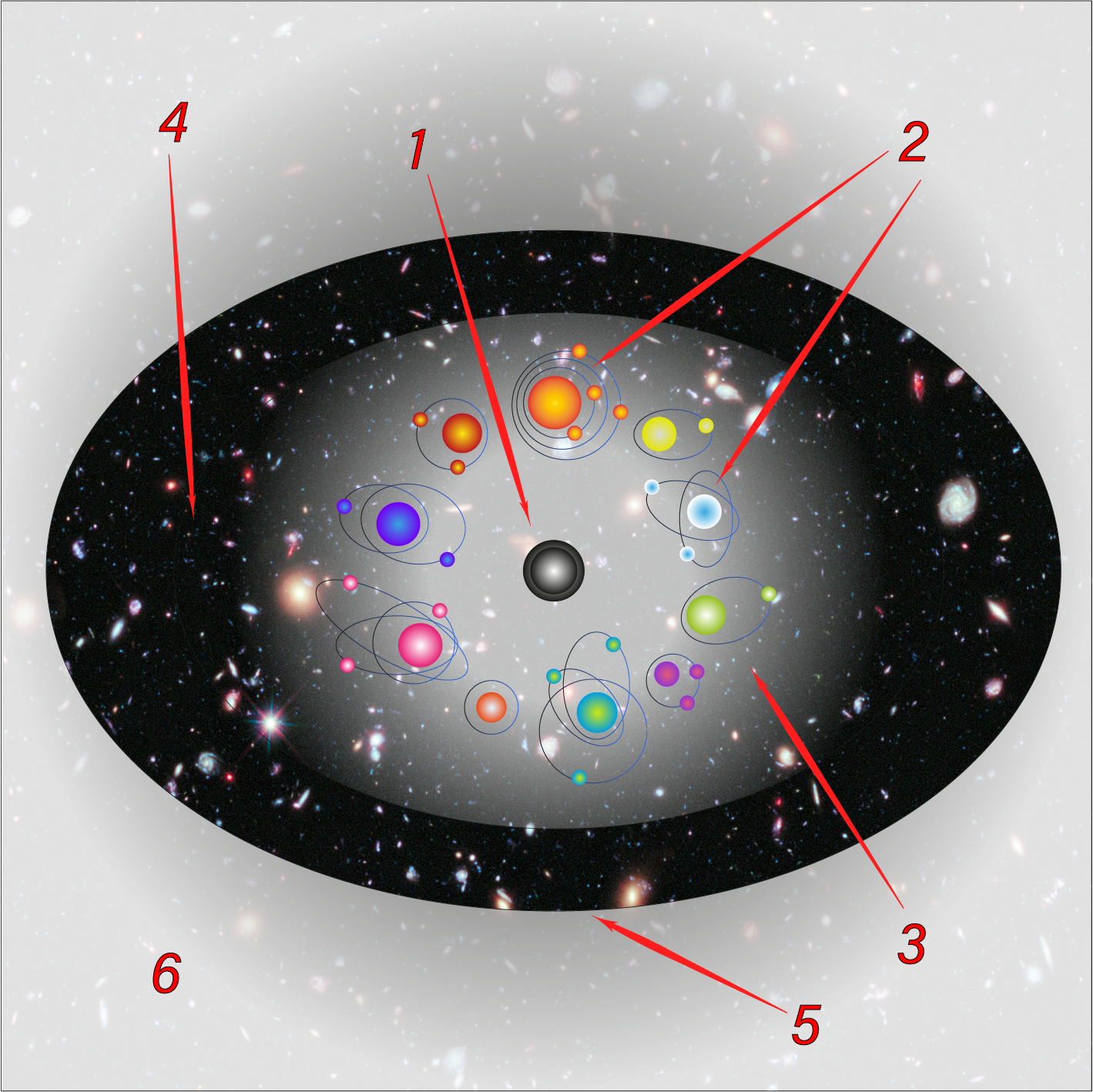 Гэрер Маиши: Я бы не был так категоричен. Дальше, вокруг осколков — пояс асайских светил (2) и сами эти светила (3). Всего среди них 10 великих звезд, которые в своё время пережили Взрыв и уцелели. Вокруг некоторых обращаются спутники — звёзды малые, сотворённые уже позднее. И, конечно, это всё совсем не такие звёзды, о которых вы могли бы подумать.