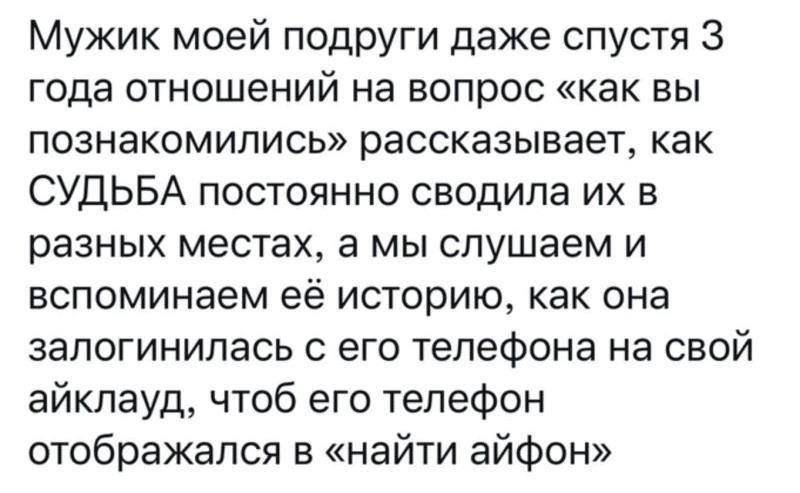 23. Приходит баба твоего бывшего, которая отмониторила его случайный лайк. Лайкает твои уродливые фотки. Идешь смотреть её страницу, убеждаешься, что она просто до изумления тупая — и забиваешь на свой пост, потому что эффект, кажется, достигнут. И настроение твоё улучшилось.