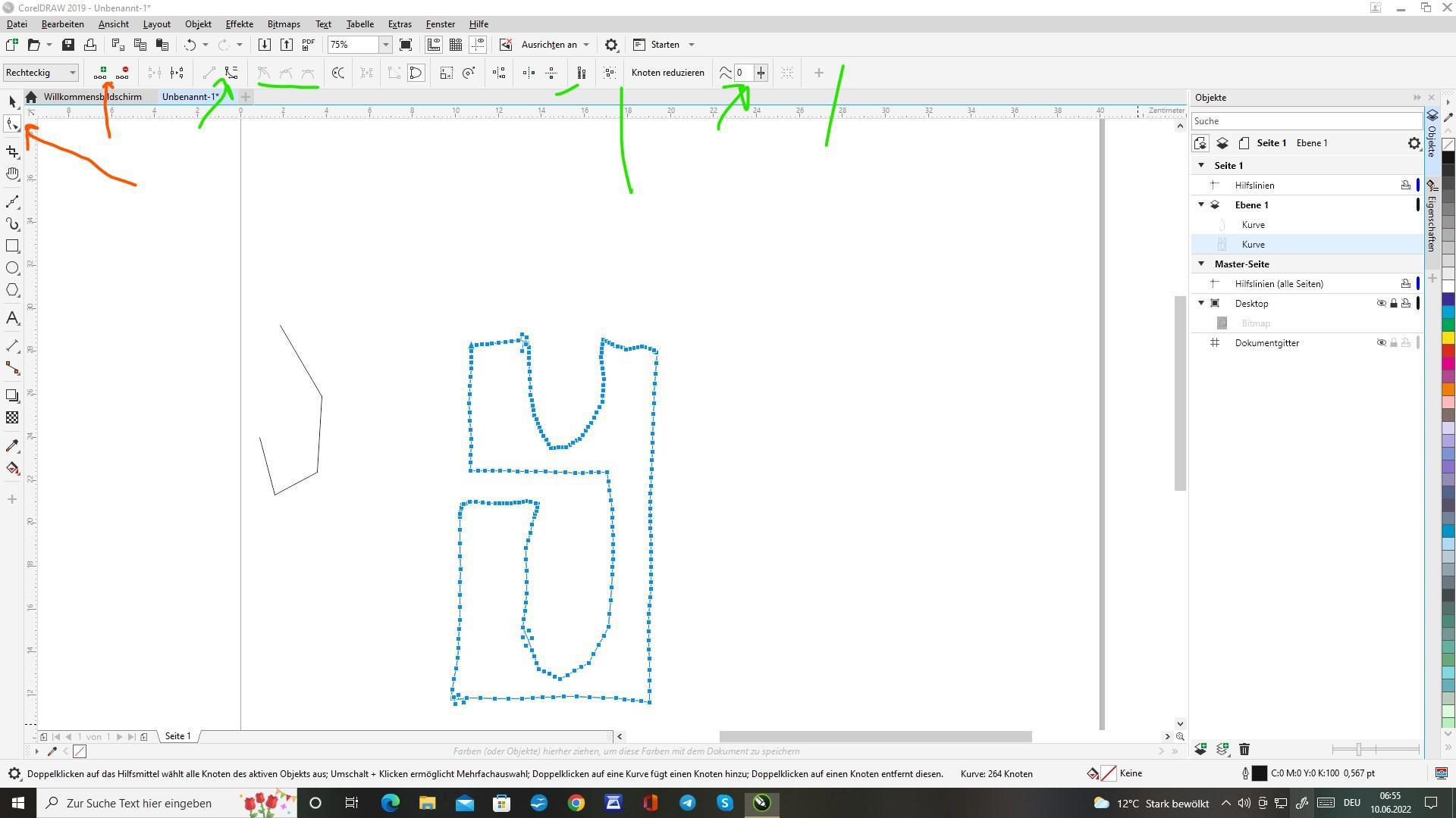 Потом можно ещё узлам качества корректировать. Я там отметил на скриншоте. У вас может быть другая прога. В Illustrator эти функции и команды аналогичные, в других местах, но, в целом все работает так же. Мне больше нравится такое делать в Corel Draw.