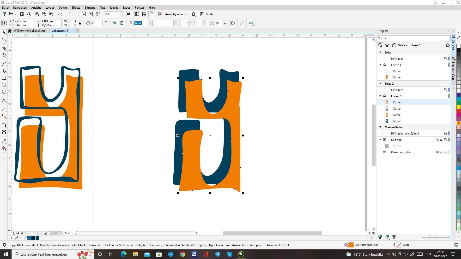 Наш сделанный красиво контур превратился в отдельный объект, теперь его можно более ещё сложно обработать. Внутренняя заливка тоже стала отдельной, независимой формой.