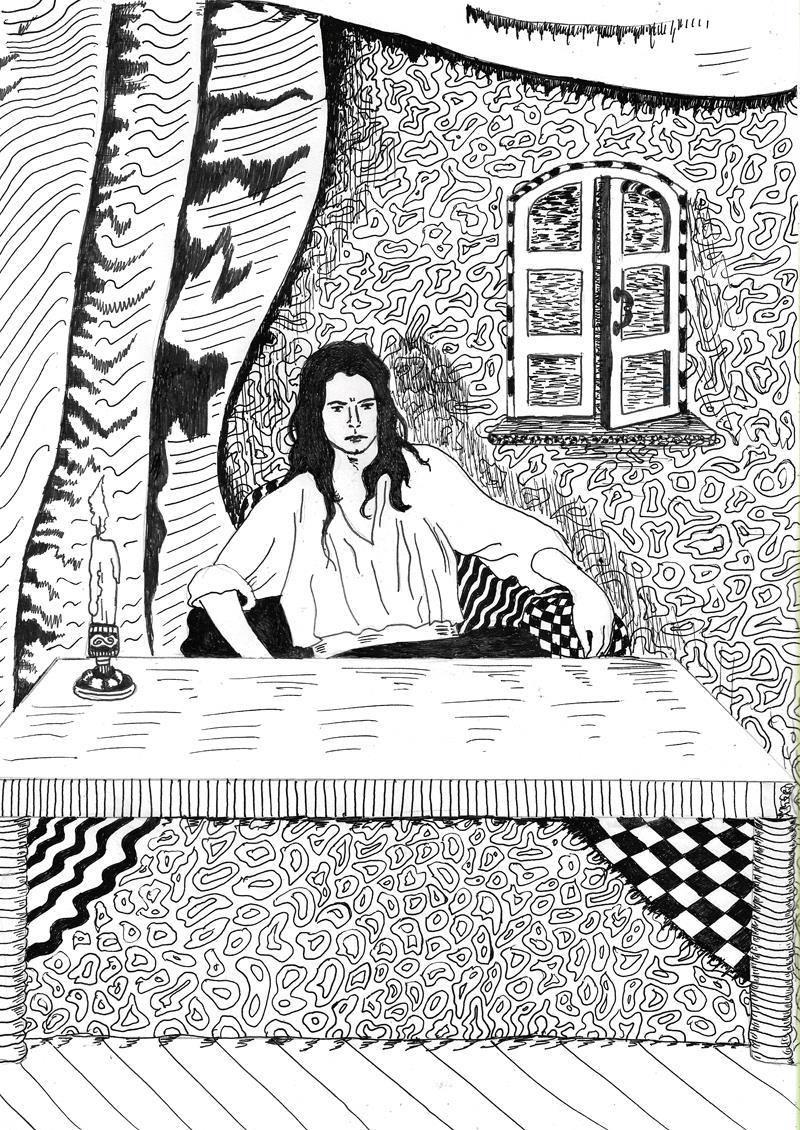 Светлане Кузнецовой, которая так стильно и точно поймала Альта в моменте, когда добыча сама приплыла ему в руки. Удивительная графика, исполненная гелевой ручкой (!). Она гипнотическая.