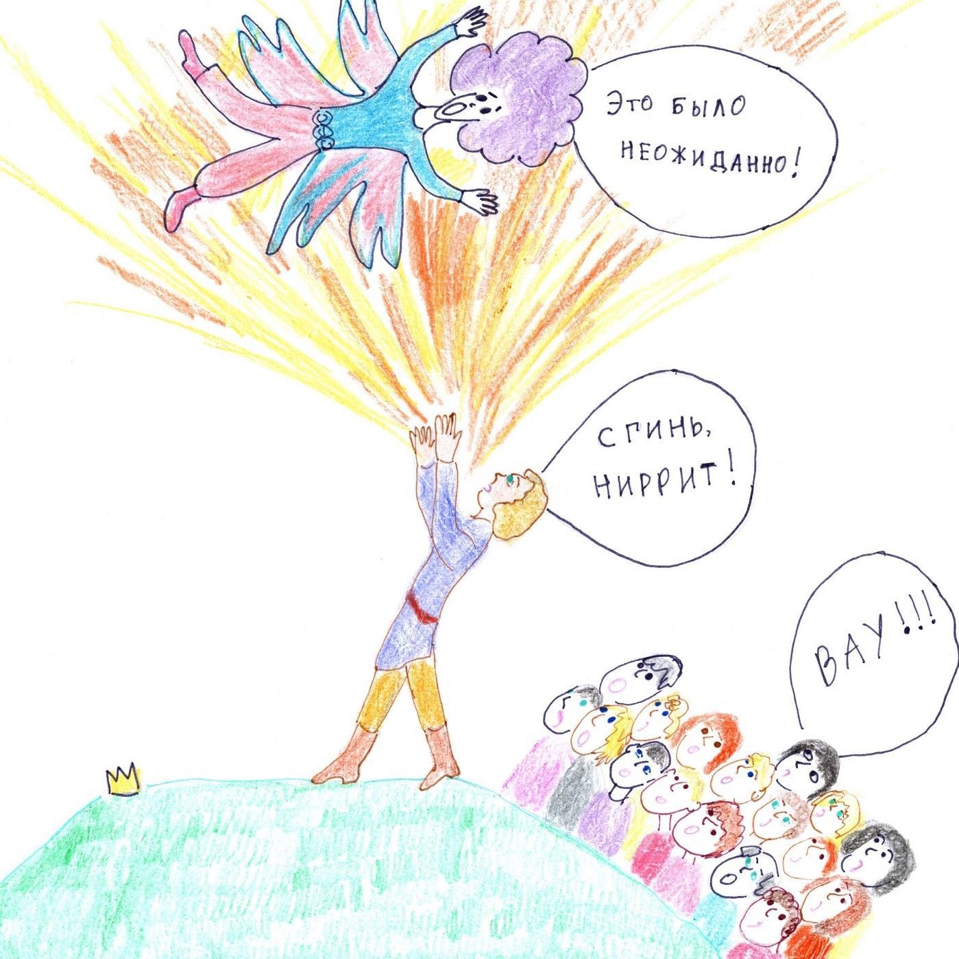 Потрясённые люди стояли на площади и не знали, что делать. Вдруг синяя молния пробила облако, и прямо перед Хемом опустился дракон по имени Вечер. Толпа кинулась врассыпную, но все услышали его громовой голос: "Собирай войско, Хем Светоносный! Мало победить Дамарха, нужно взять Изморг, освободить народы Крора от приспешников тирана, пока они не опомнились!"