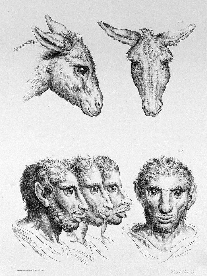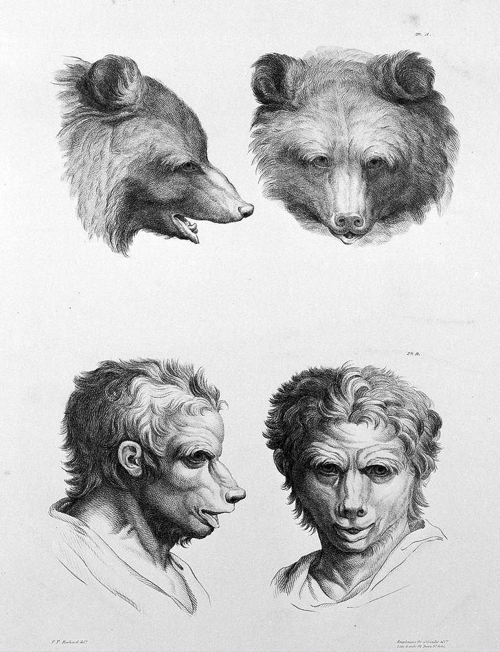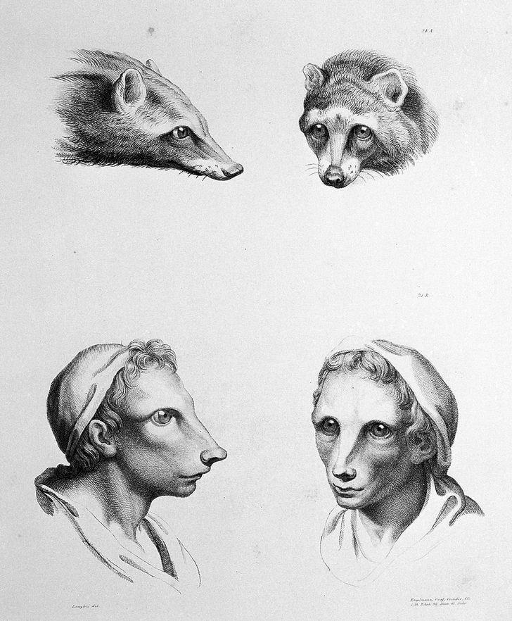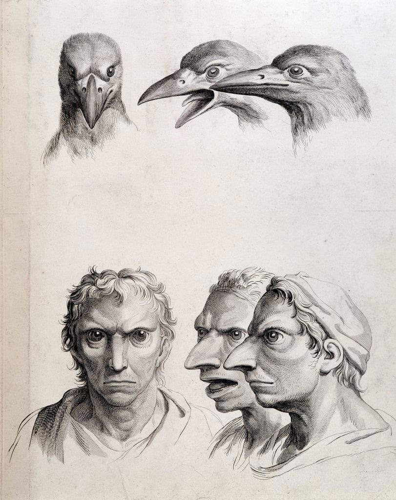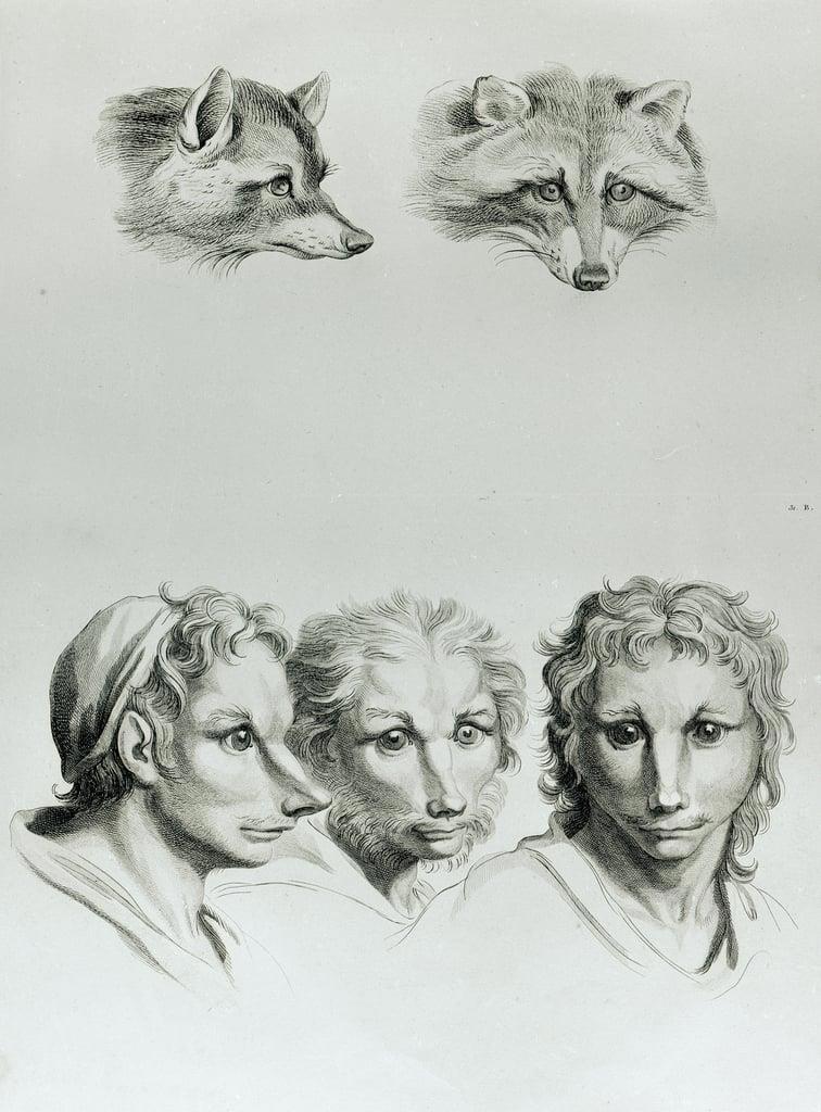 Эволюция утверждает, что человек произошел от приматов. Об этой теории мы знаем со школьной скамьи и не берёмся её оспаривать. Но давайте на мгновение предположим, что развитие человечества пошло совершенно другим путём. Как думаете, как выглядели бы люди, если бы их предками стали различные животные — еноты, лисы или даже медведи? Сложно вообразить? А вот французский художник XVII века Шарль Лебрён смог это сделать и даже изобразить на бумаге. В своей работе «Трактат о выражении лица» (опубликован посмертно в 1698 году) Шарль показал невероятные портреты «новых» людей, которые безумно интересно рассматривать, хоть и немного жутко.
