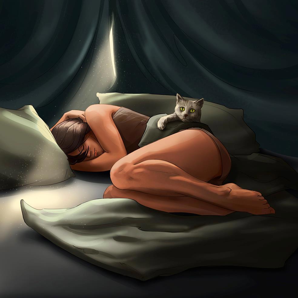 Кошкин недовольный вскрик, и тяжесть перемещается с груди на поясницу. Эта тяжесть приятна, но вскоре навязчива, ощутима, невыносима!