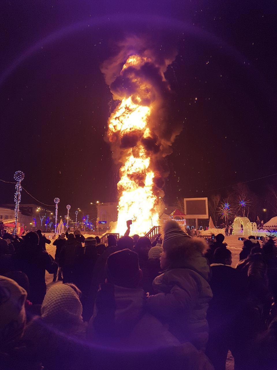Главная ёлка Южно-Сахалинска. Быстро и решительно сгорела на работе. Если нагуглить видео, то можно восхититься выдержкой ди-джея, который продолжил вести праздничное мероприятия, даже несмотря на горящую ёлку.