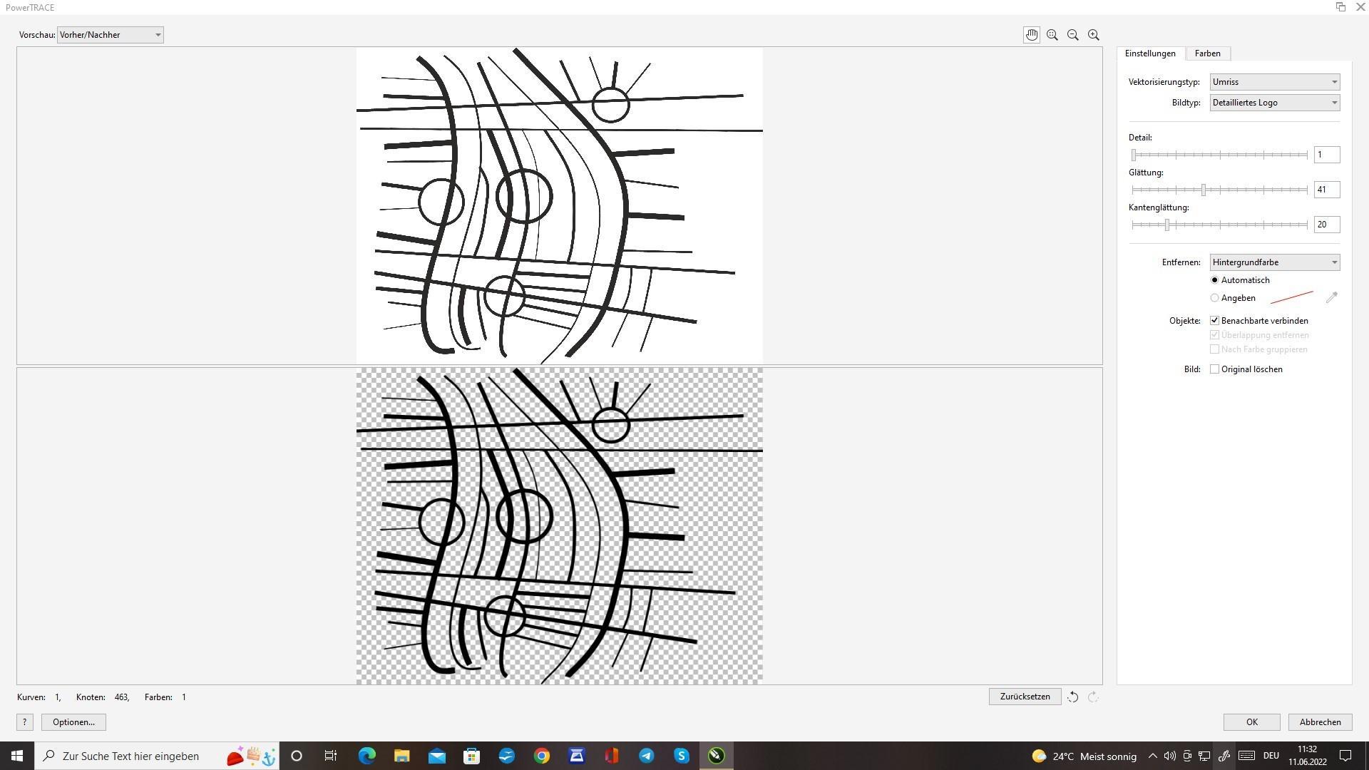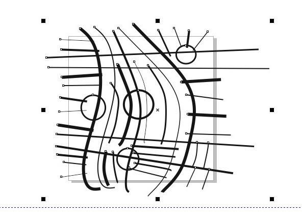 снова сунул в векторный софт, там снова векторизировал, и уже тогда стал туда-сюда, в основном вручную, вот так тянуть контуры и немножко извращаться. Тут можно еще играть и играть...