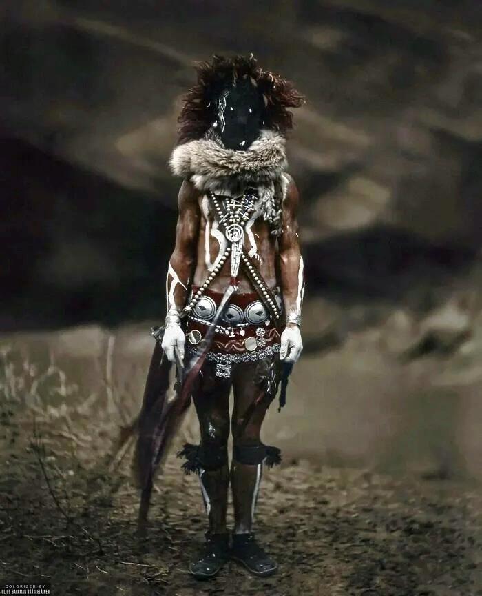 1904 год, США. Индеец навахо в костюме мифического героя Найенезгани. По легенде, этот герой вместе со своим братом Тобадзини избавил мир от Анайе (монстров из мифологии навахо).