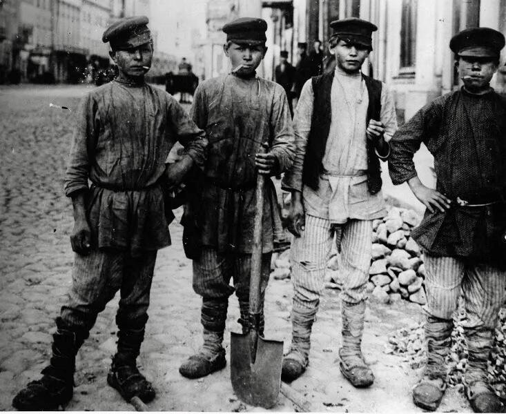 1910 - 1916 год, Россия, Москва. Подростки-рабочие, мощение улицы Покровка. МАММ/МДФ.