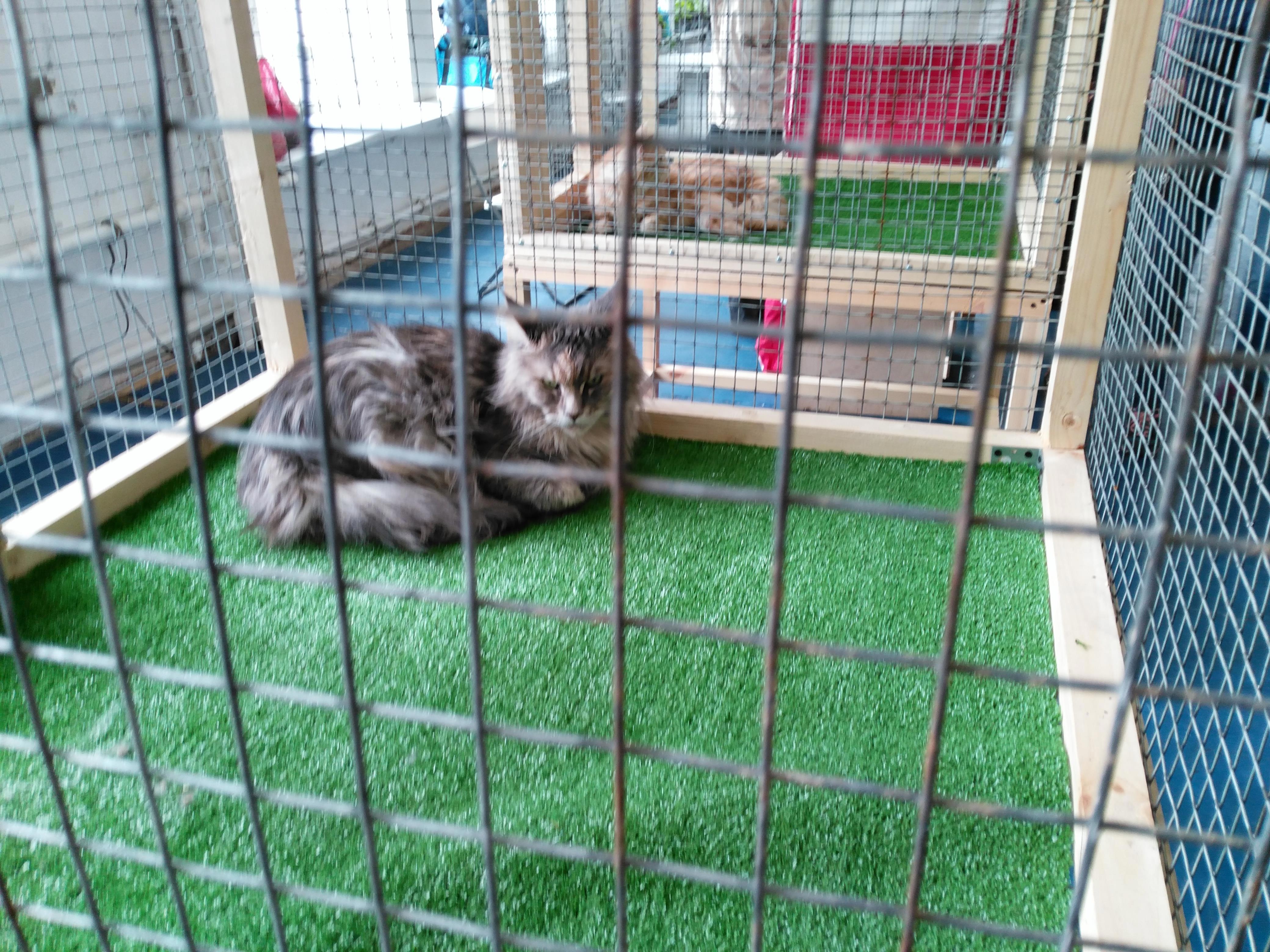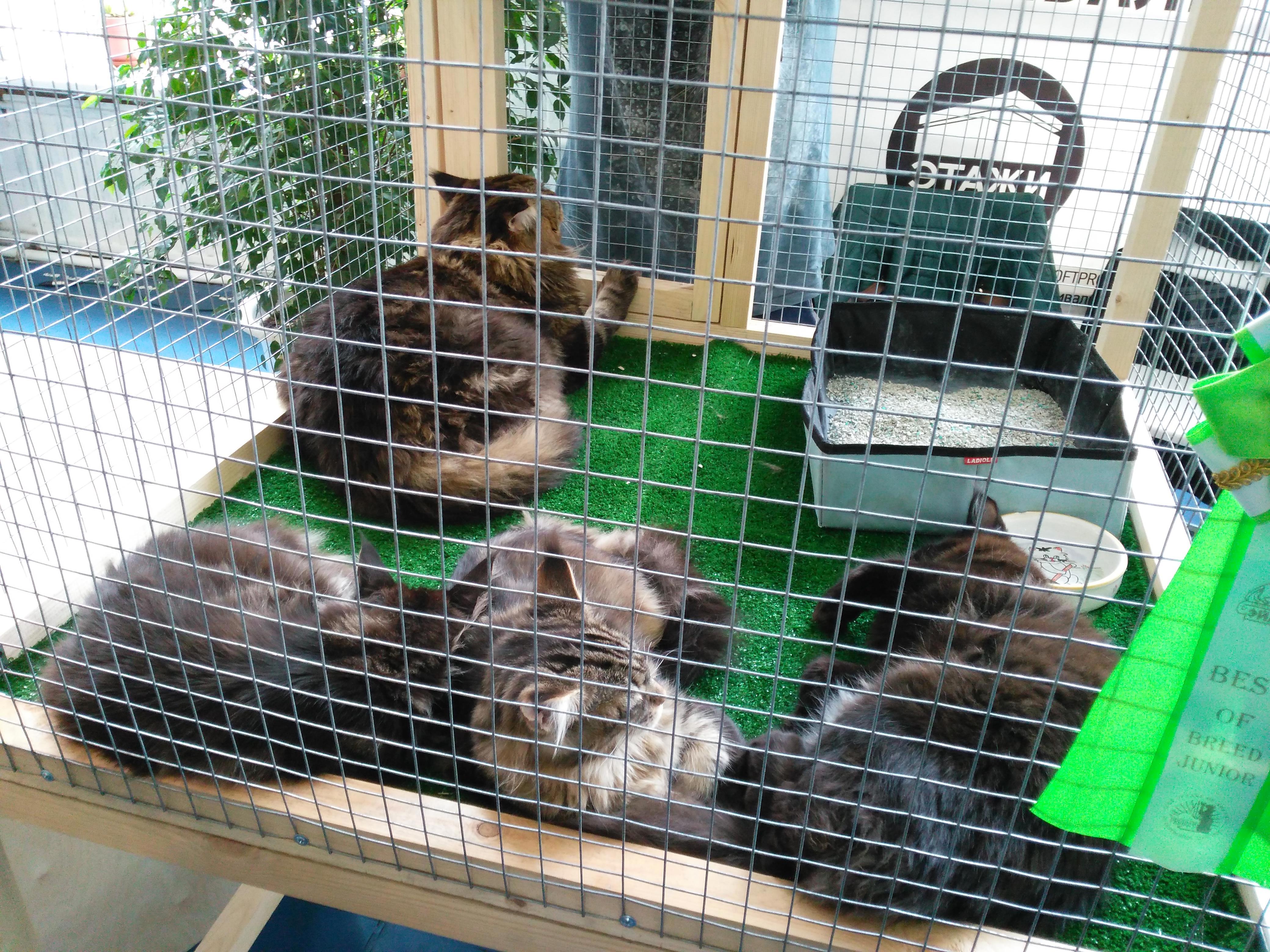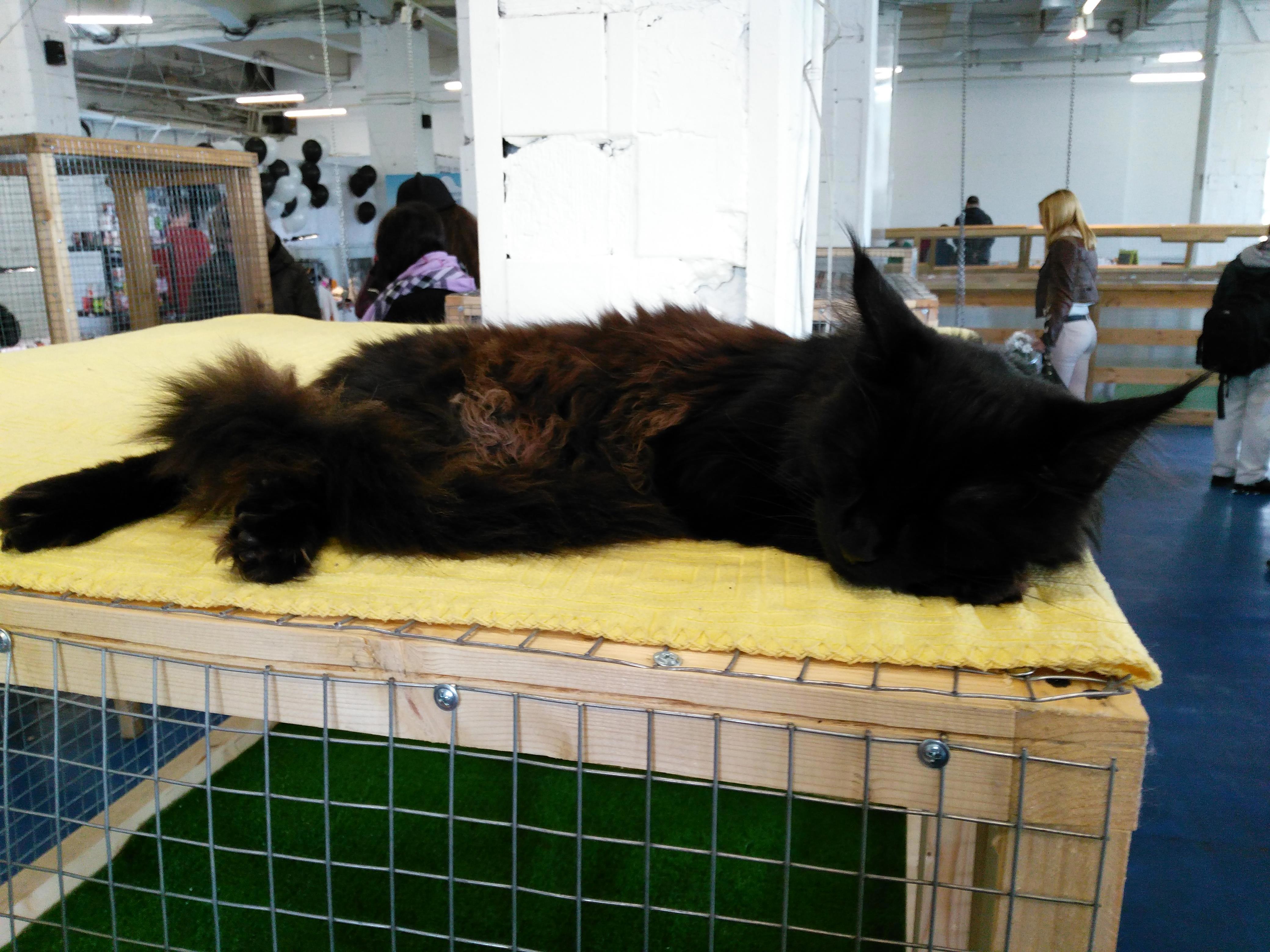 На выставке котофеи сидели в клетках. Вид какой-то был нерадостный. Особенно у тех, кто в одиночках)))