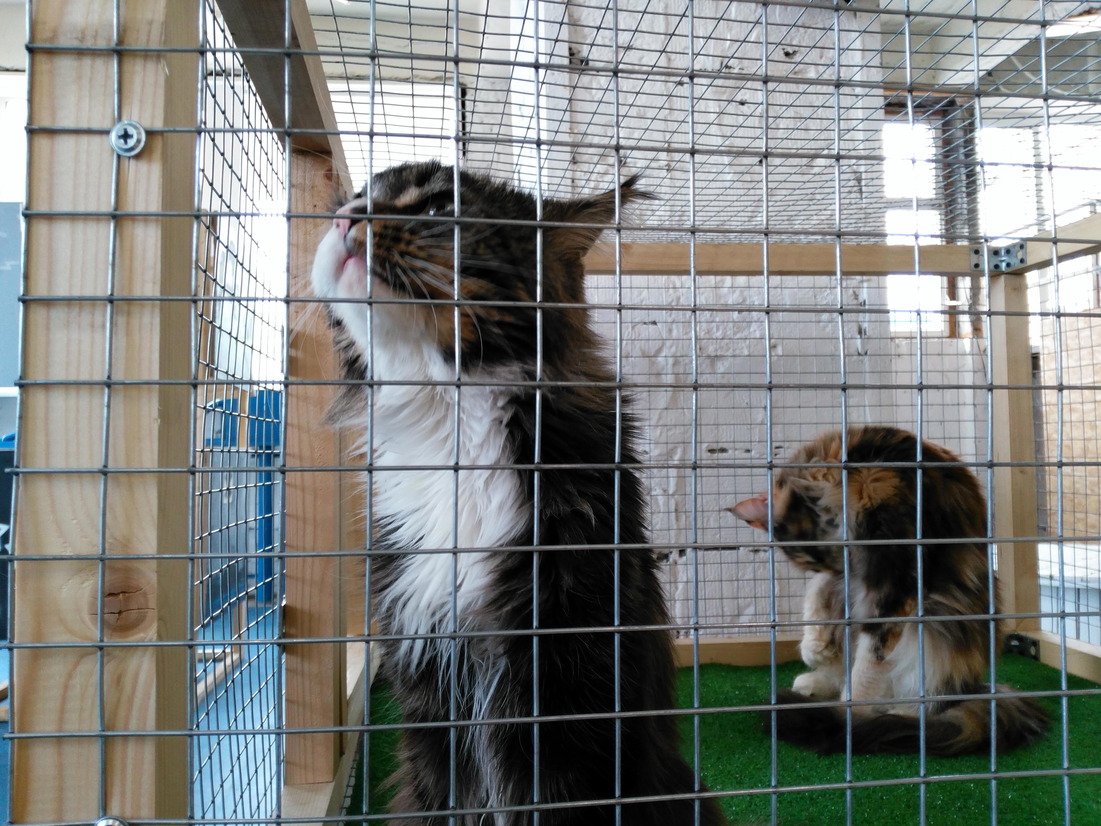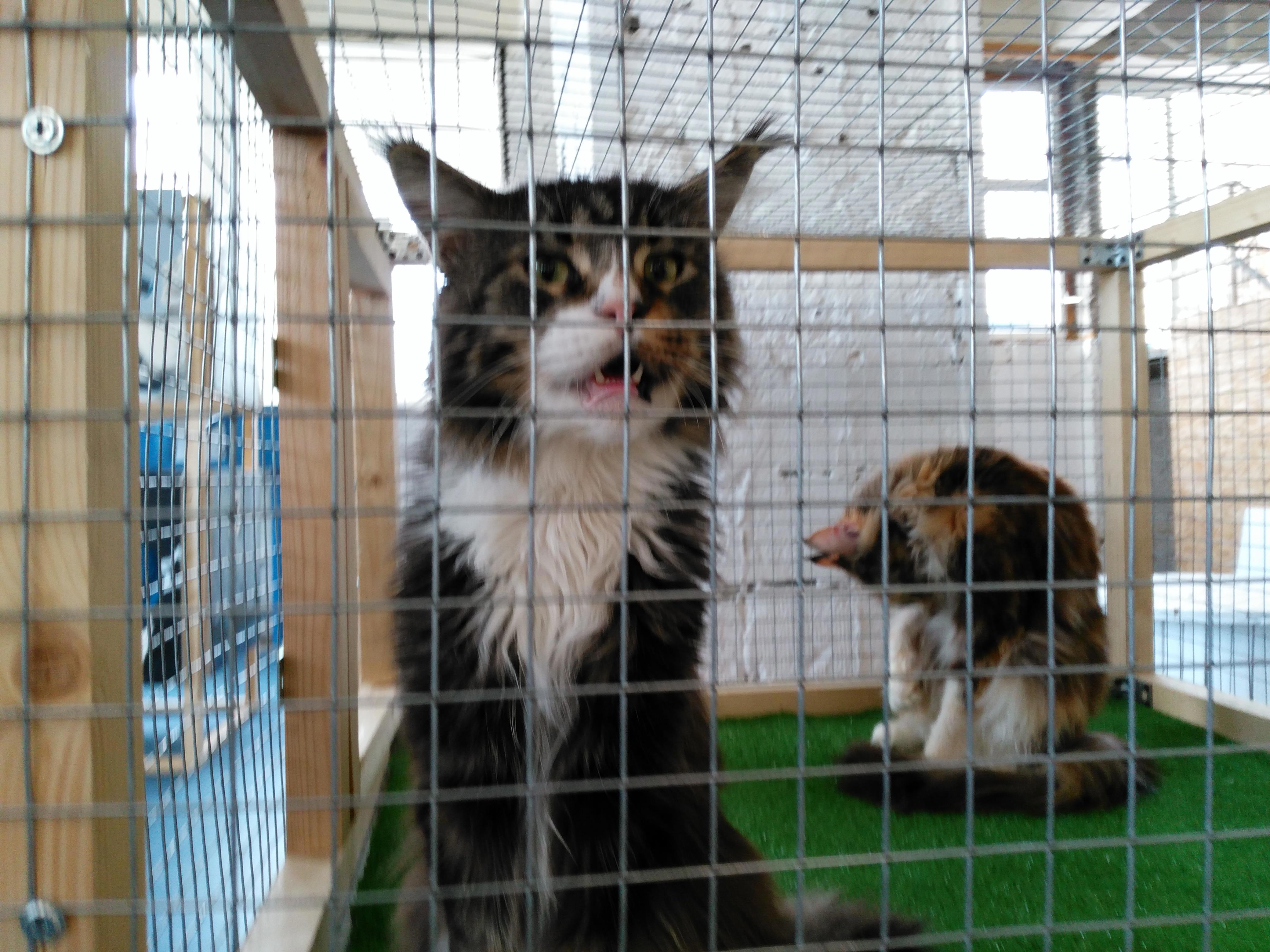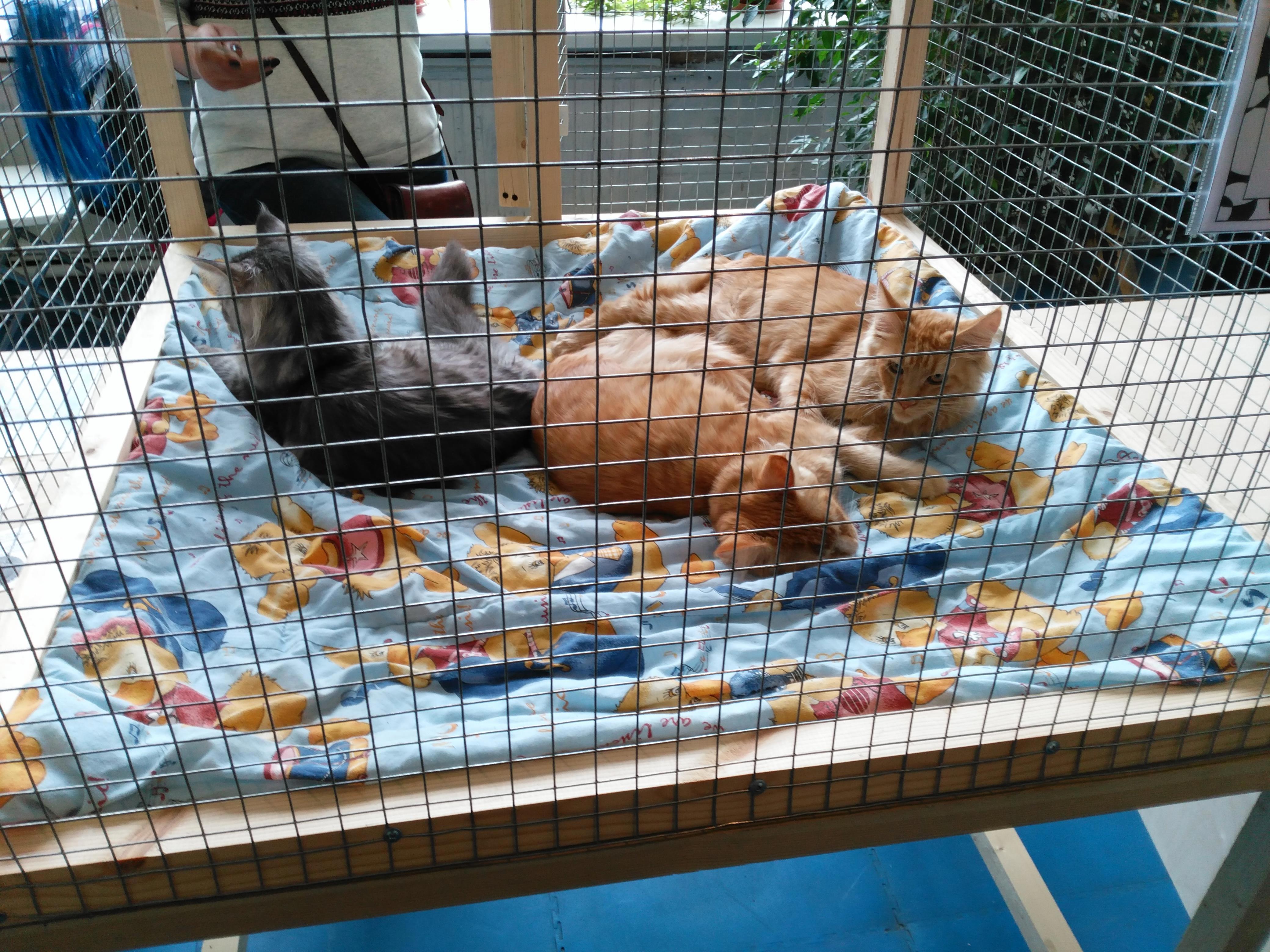 На выставке котофеи сидели в клетках. Вид какой-то был нерадостный. Особенно у тех, кто в одиночках)))