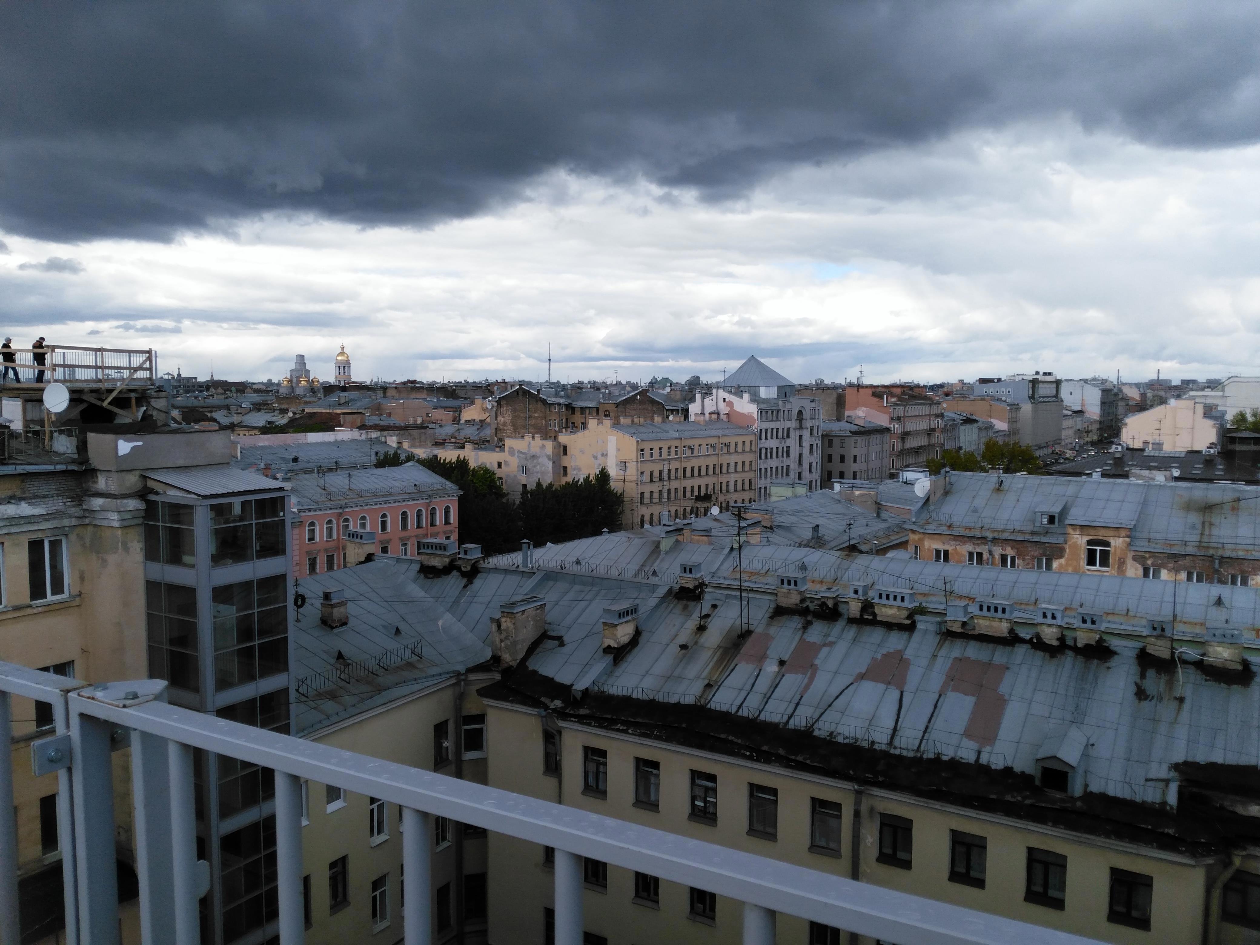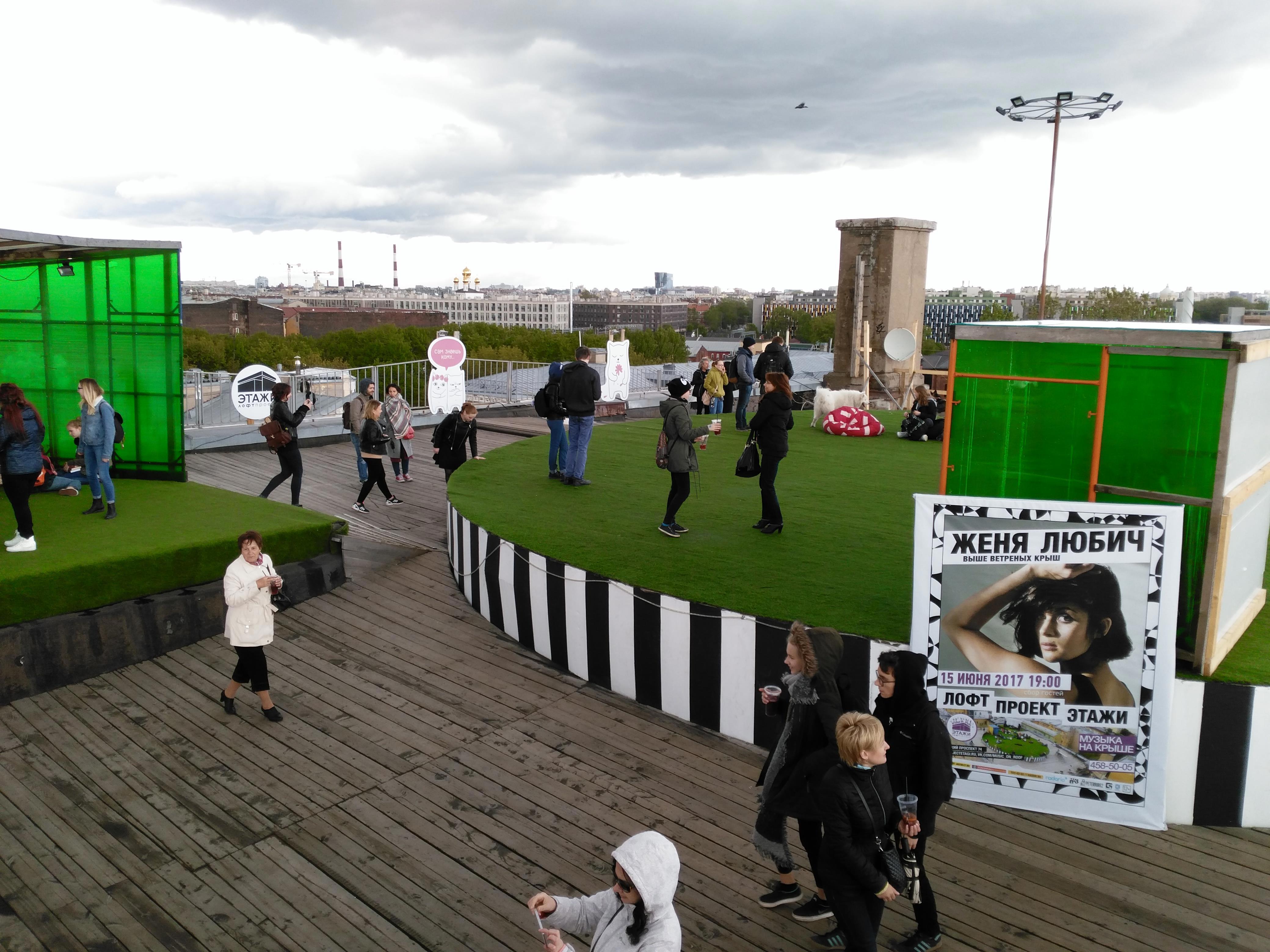 Автор: Николай БергКультурный центр в здании бывшего хлебозавода: галереи, магазины, кафе, терраса на крыше с видом на город. Расположен на Лиговке. Вид с крыши на город.