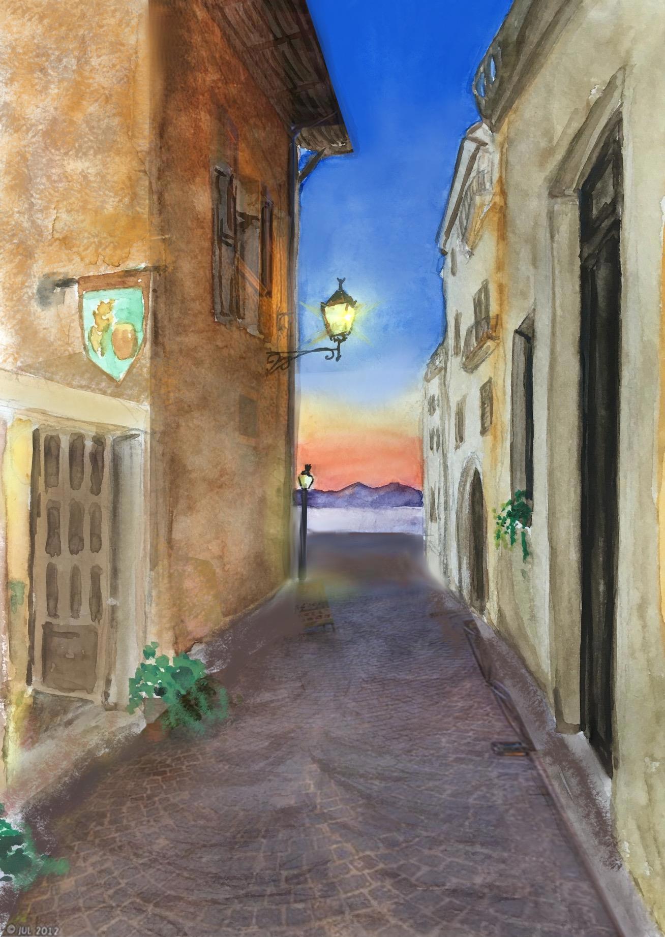 А где-то улочки сбегают к морю... первая проба сделать куски изображение наложением с фото - прочитала про технику и решила попробовать. Тем более что портить в рисунке было нечего - а вот не стоит акварелить на совершенно не приспособленной для того бумаге. Она так коробилась... но рисунок было жалко бросать. Правда, все равно пошел в корзину.