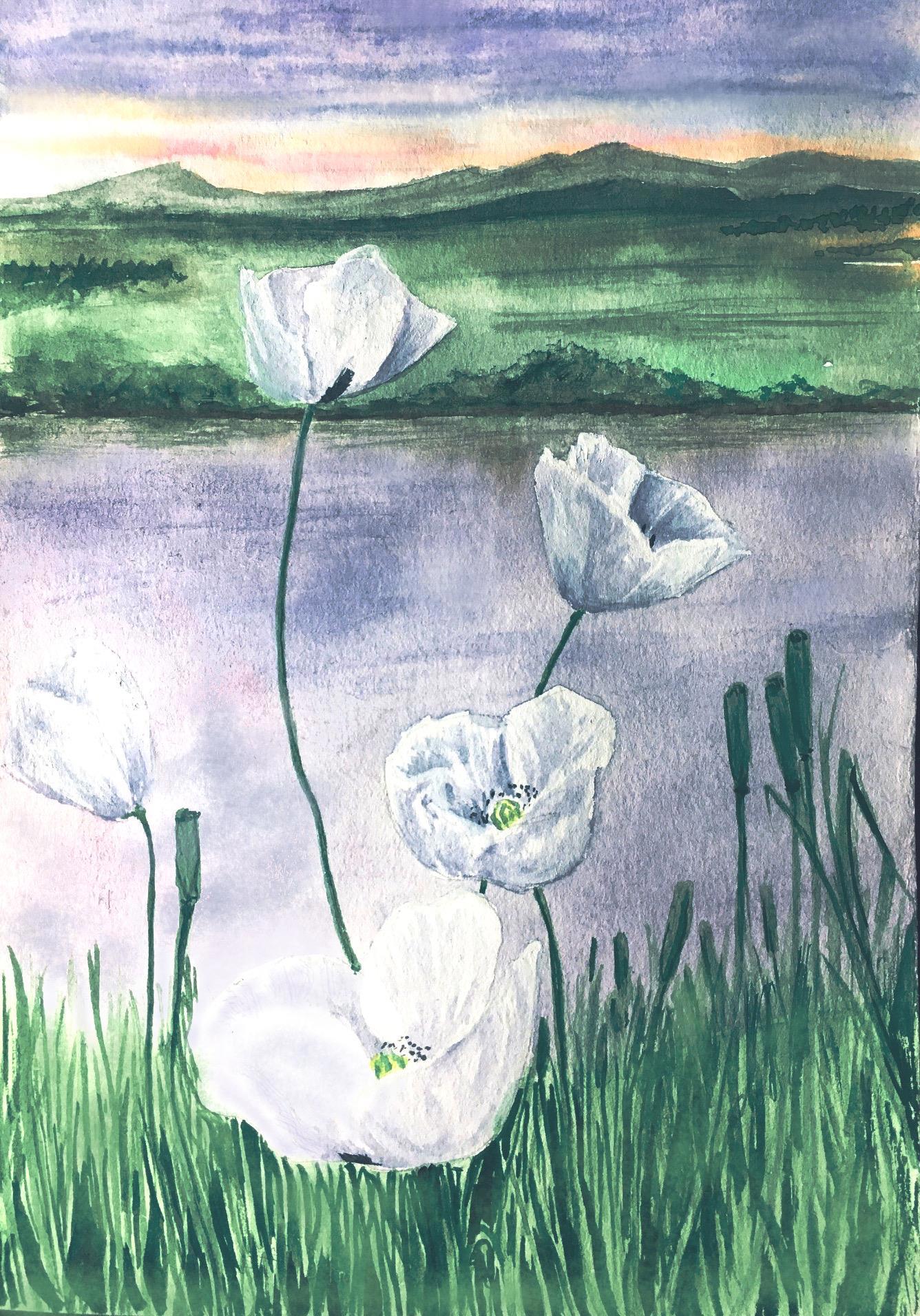 Продолжилось "акварельное пиршество" цветочками - скромными полярными маками...
