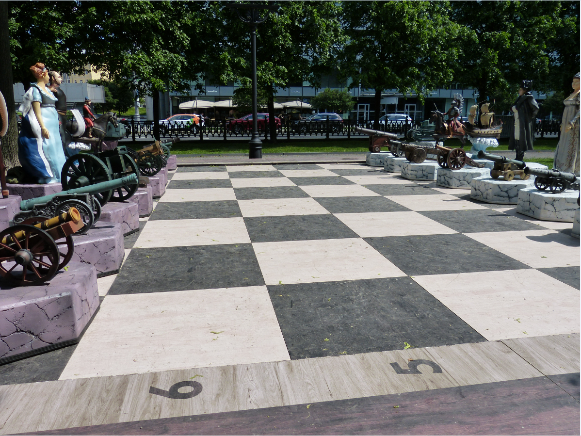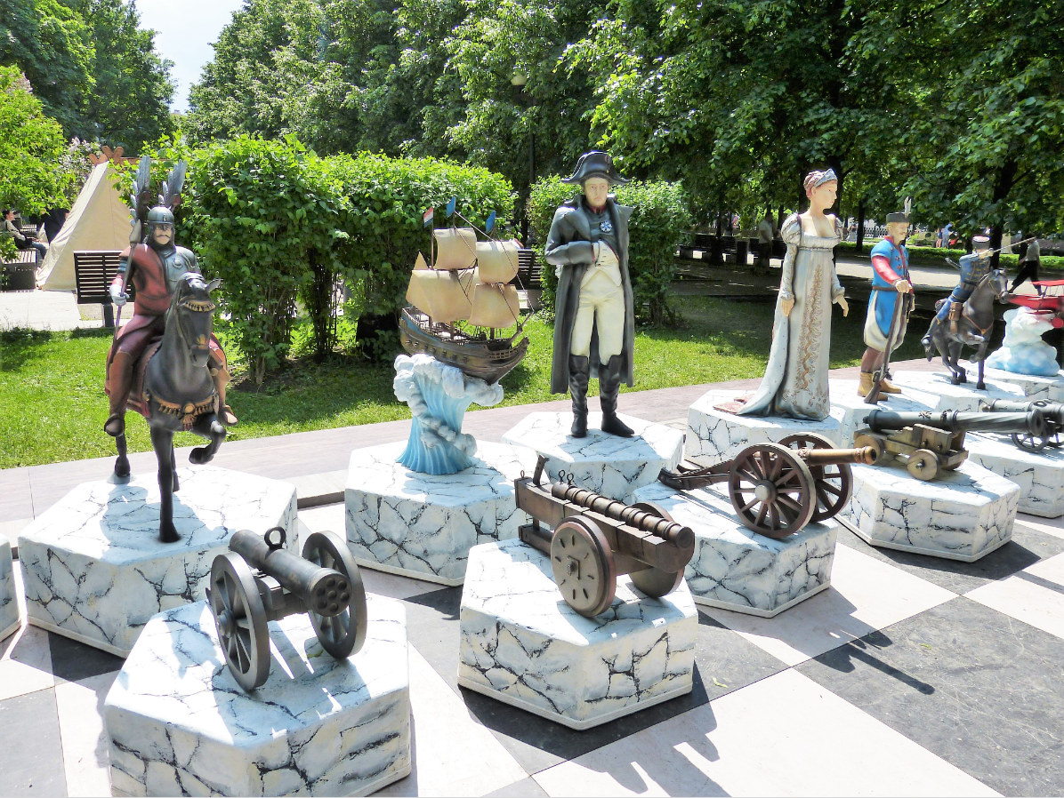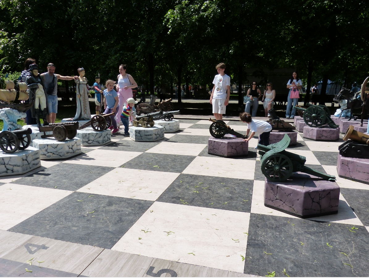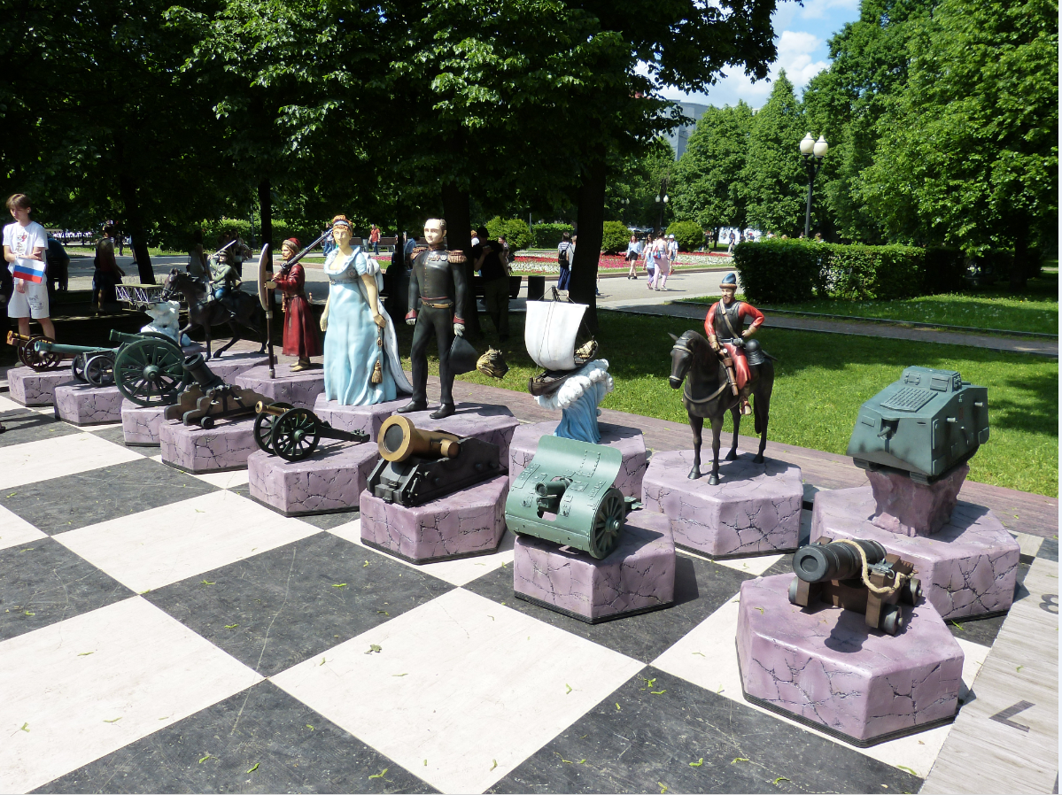 Обратите внимание на чёрного короля и его королеву. Вы ведь их узнали? А ещё я никогда не видел, чтобы роль пешек исполняла артиллерия!