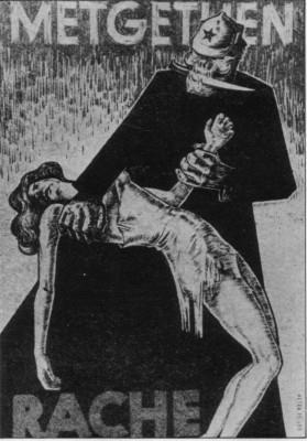 Мне шел двадцатый год, но я еще оставался зеленым мальчишкой. В то же время у меня в подчинении были вполне зрелые и даже перезрелые мужики. Должен отметить, что не все немки испытывали ужас от встречи с нашими солдатами. Были, конечно, ужасные, драматические и трагические эпизоды, но были и вполне мирные договорные встречи, и многие наши воины быстро освоили простейшие немецкие сочетания слов, вроде: «Фрау, ком зи Гер, хинлеген». Однако, когда мы через два месяца вернулись на Земландский полуостров, кое-где попадались немецкие плакаты: наш небритый солдат в буденовке тащит на руках женщину в разорванном платье. Под картинкой подпись: «Немец, помни Метгетен».