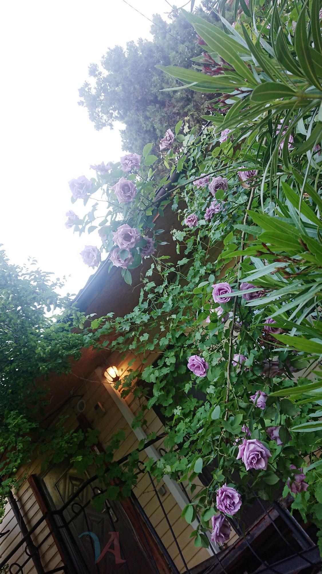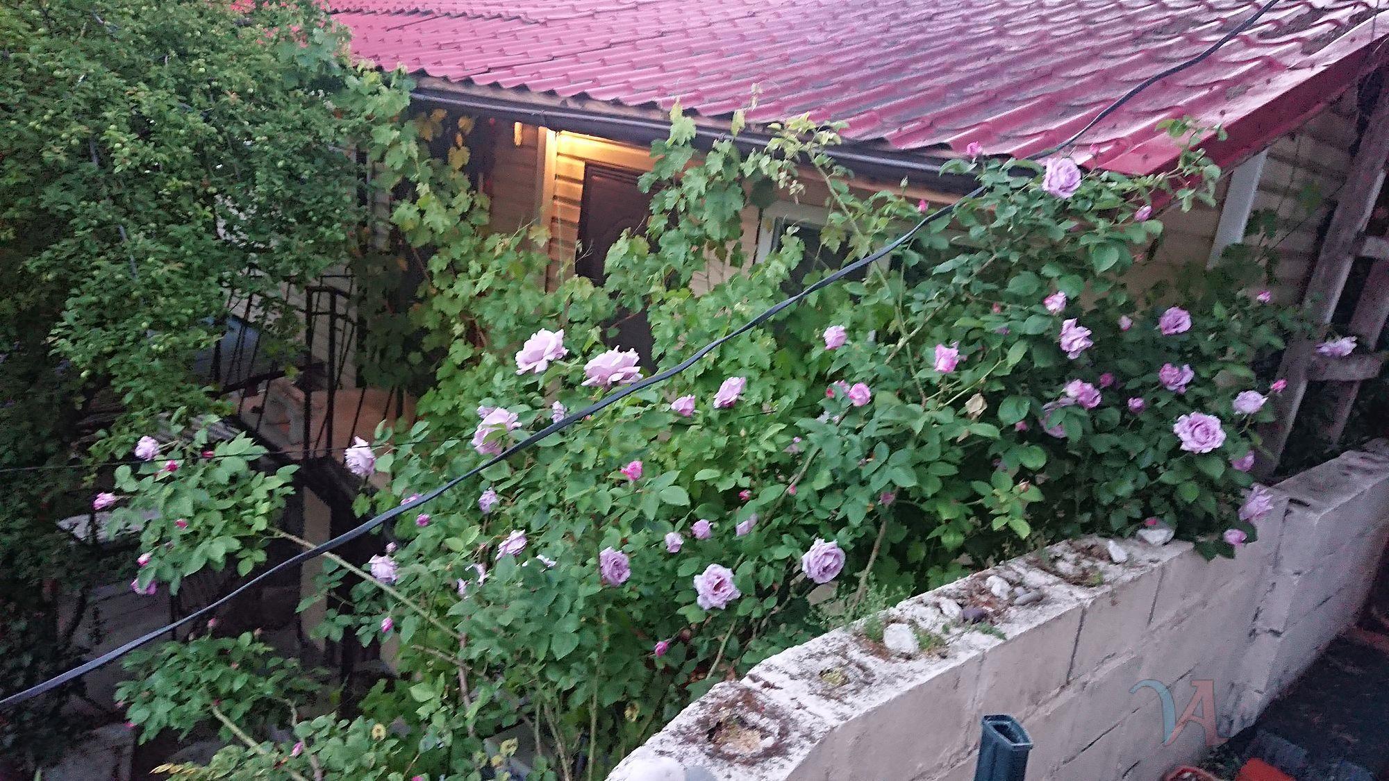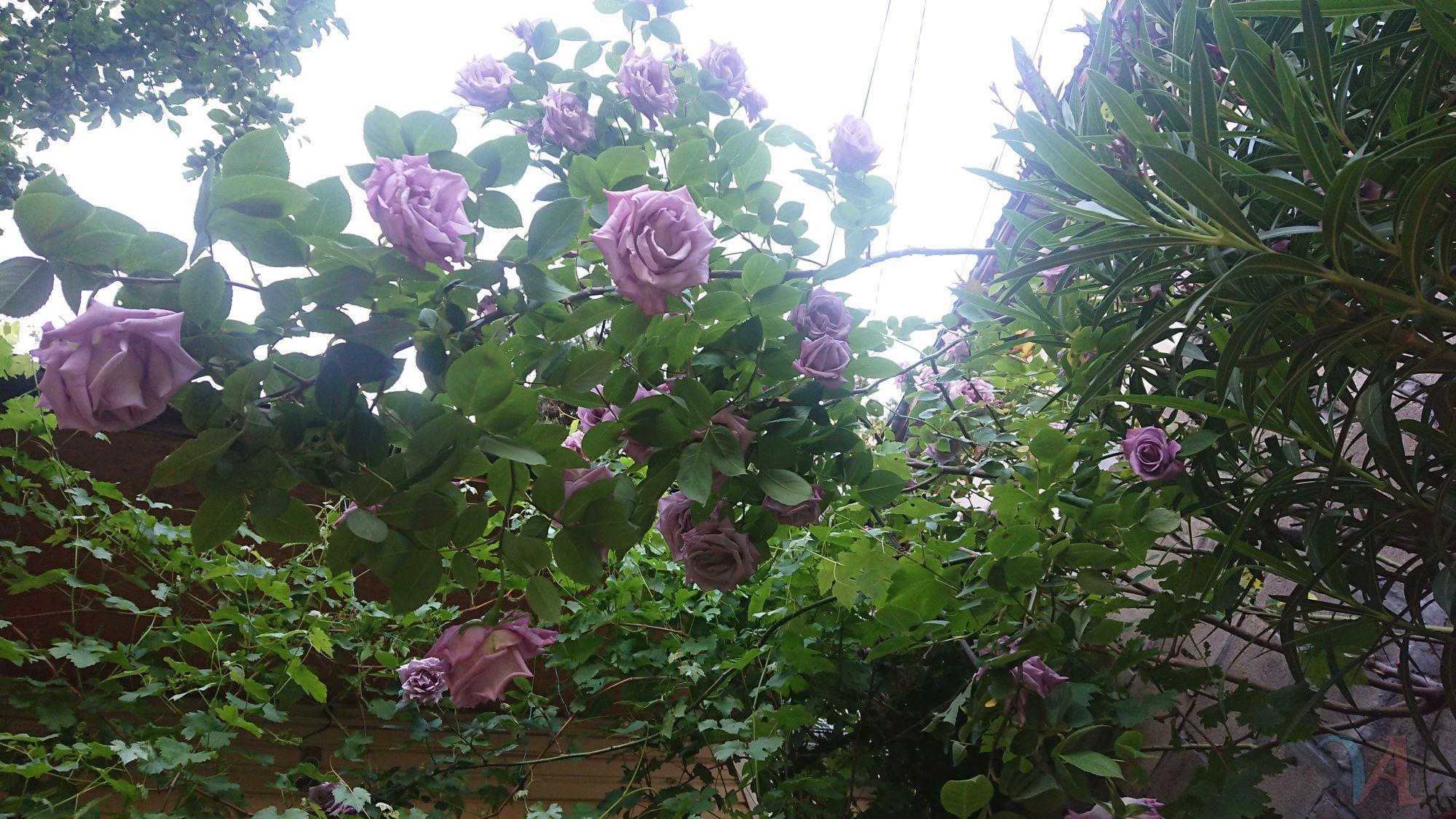 Шток-роза была подрезана хозяином довольно коротко. Оказалась дикого сиреневого цвета. Зато ароматная, прямо как чайная, я даже варила из неё варенье. Она выпускает очень длинные побеги, в среднем я стригу её раз в 2 года хотя бы, но в прошлом забыла, и меня завалило розами!
