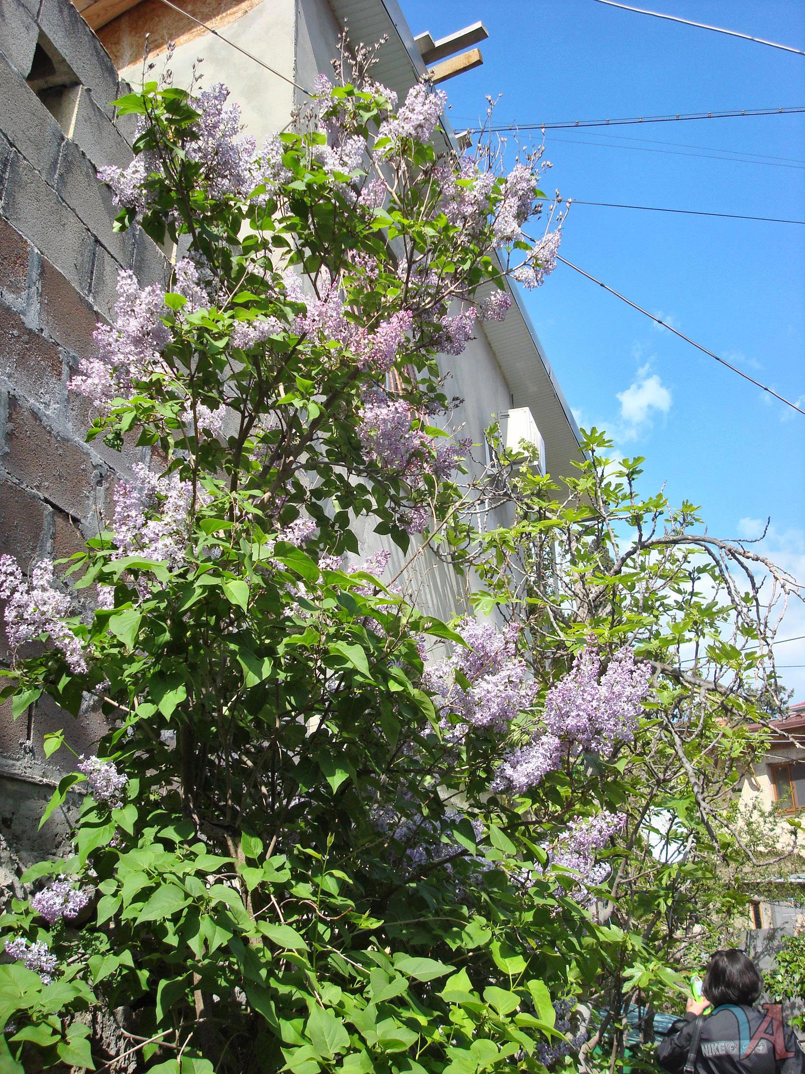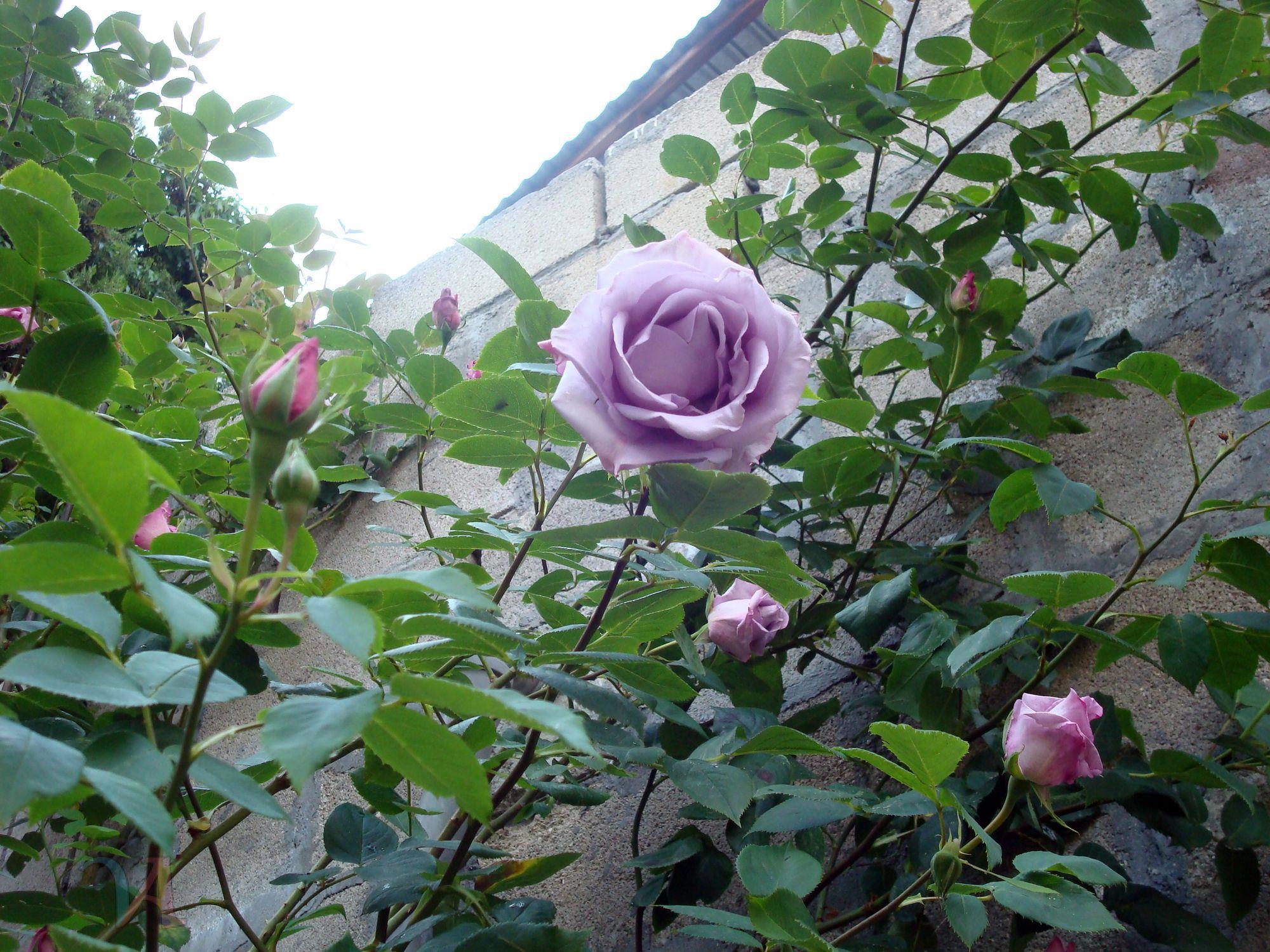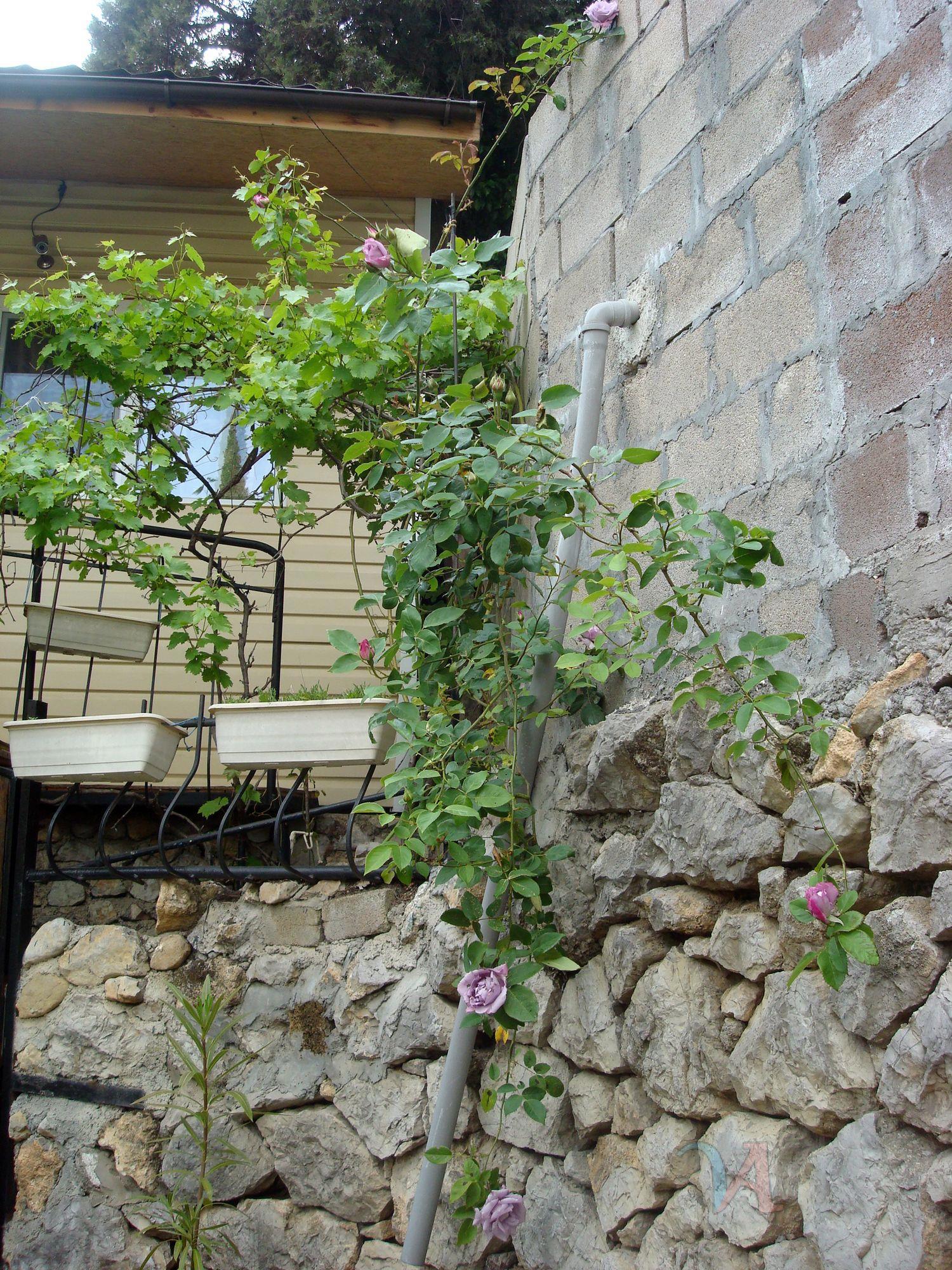 Шток-роза была подрезана хозяином довольно коротко. Оказалась дикого сиреневого цвета. Зато ароматная, прямо как чайная, я даже варила из неё варенье. Она выпускает очень длинные побеги, в среднем я стригу её раз в 2 года хотя бы, но в прошлом забыла, и меня завалило розами!