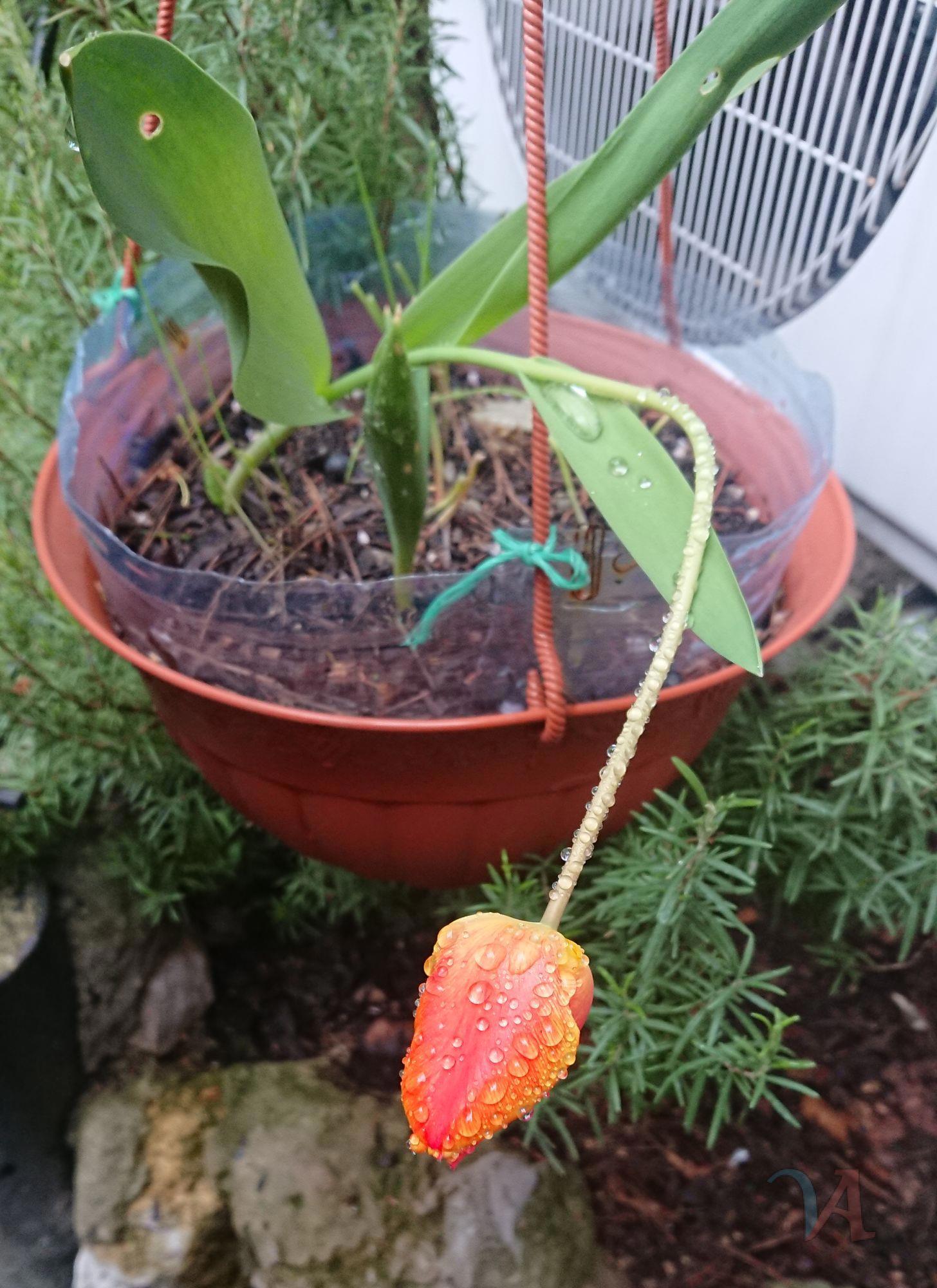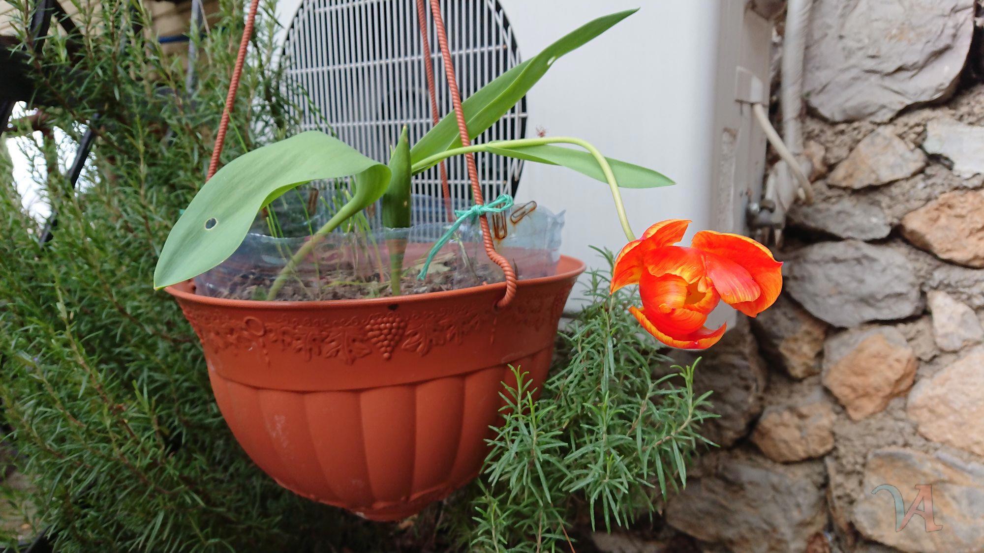 Рядом в языке я всё время пыталась сажать то лук, то чеснок, то мяту посеять, но в итоге там ничего не растёт - коты вылёживают, а теперь и розмарин затеняет, видимо. Даже самосев, который между камней всходит - ни жу-жу. В 2020-м году я посеяла туда лучок, привезённый от бабушки. Дала мне его покупательница дома целый горшок, но, к сожалению, он почти сошёл на нет. В прошлом году я пересадила его в навесной горшок, где выше видно тюльпаны, но только в этом году он наконец-то начал пышнеть!