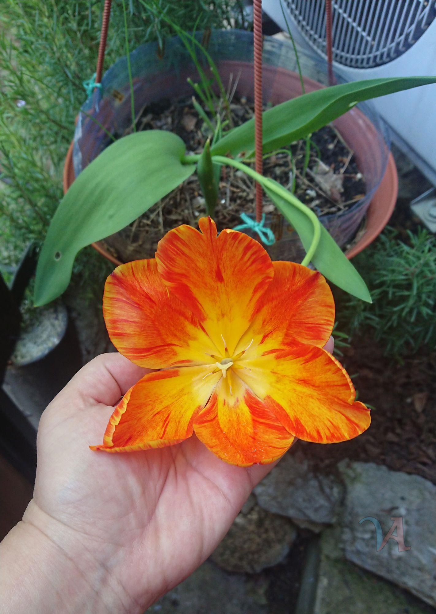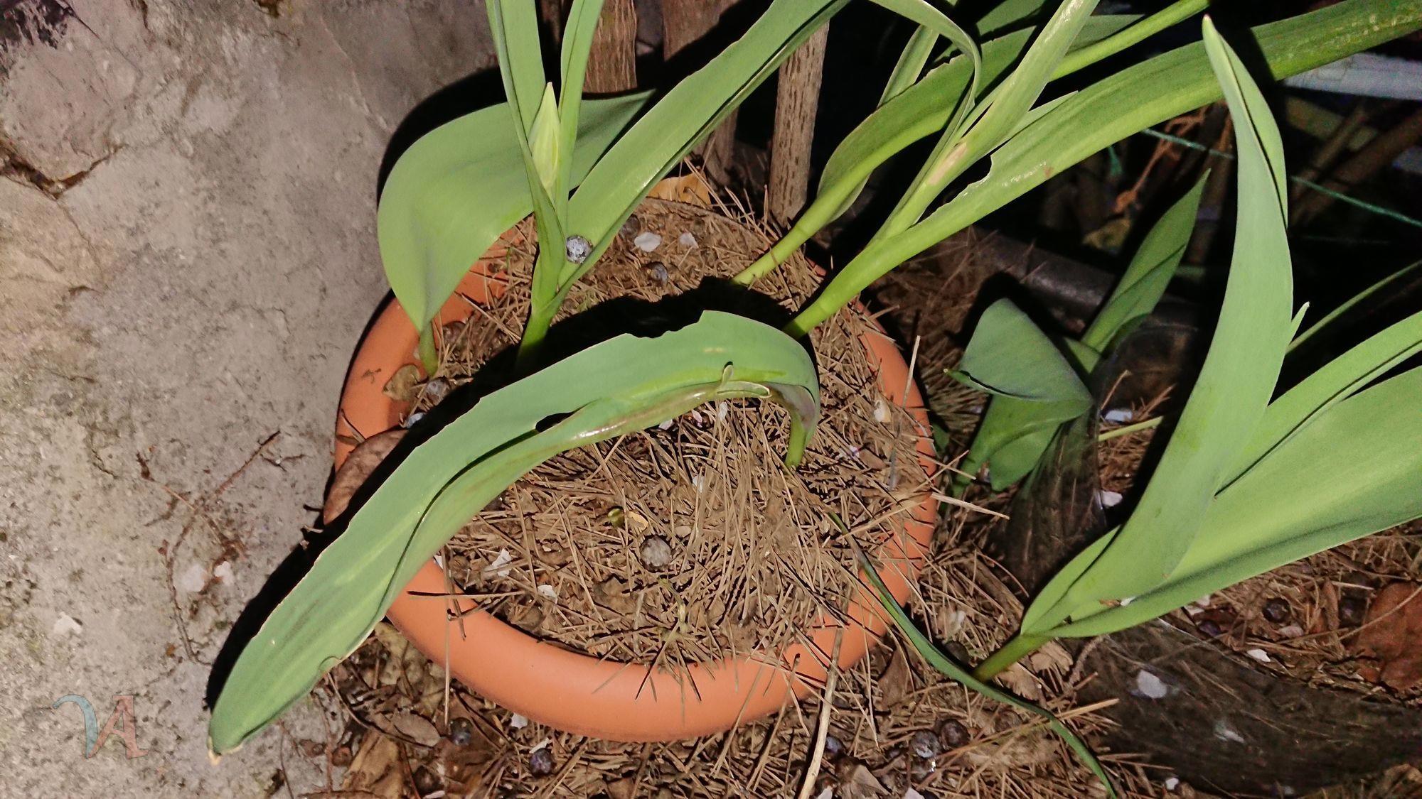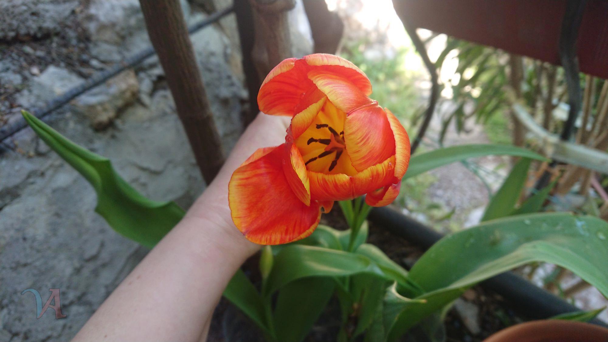 В этот треугольник на следующий год планируется высадить тюльпаны, с которыми произошла отдельная история. Их собирала мама у бабушки и при переезде я захватила некоторое количество луковиц весной. Однако по осени я их не нашла и решила, что кто-то из жильцов спионерил. Нашла только через год! Высадила на зиму куда попало, а весной они почти все ожили! К сожалению, из-за повторных внезапных морозов и снега (я так думаю?) нормально зацвело только два, у ещё трёх не сформировался правильно цветок, а остальные решили вообще поскипать год(?).