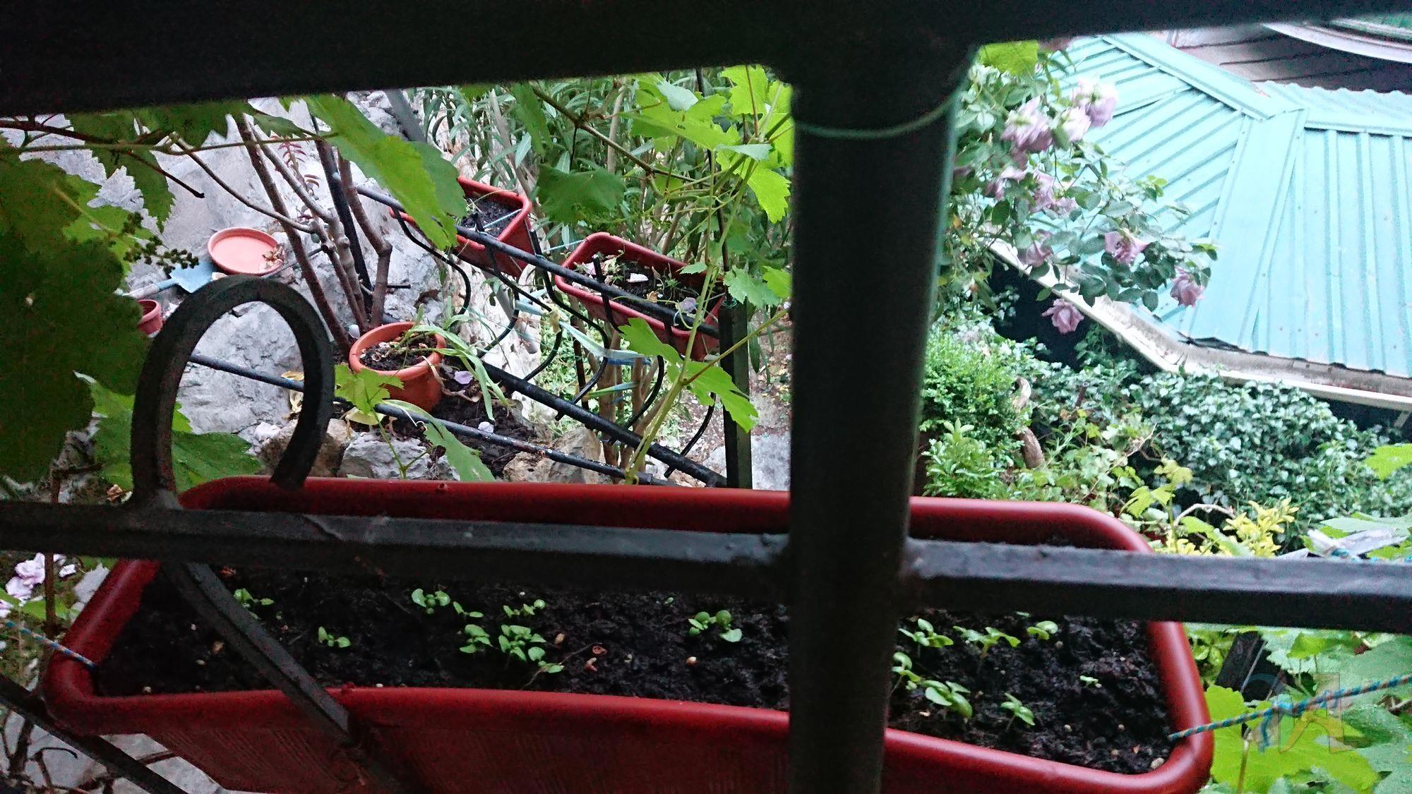 Базилик растёт отлично, а кинза так себе. Второй ящик внизу пока в неопределённости. Изначально я посеяла туда рукколу, она была маленькая и на другой год посеялась вниз, так что были целые заросли пару лет.