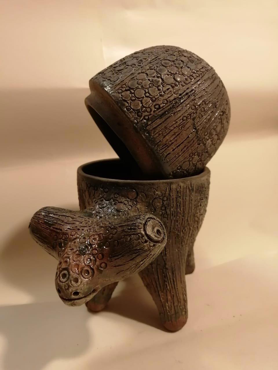 Автор: Владимир ЦимбалистовРешил изваять героев своего романа. Первый уже готов – ящер Слик. Изделие универсальное –может служить и конфетницей, и шкатулкой для разных мелочей. Материал – кубанская дикая глина, дровяной обжиг, глазурование. Ящера можно купить – пишите в личку.