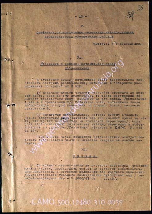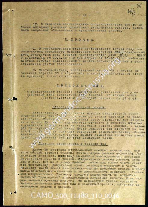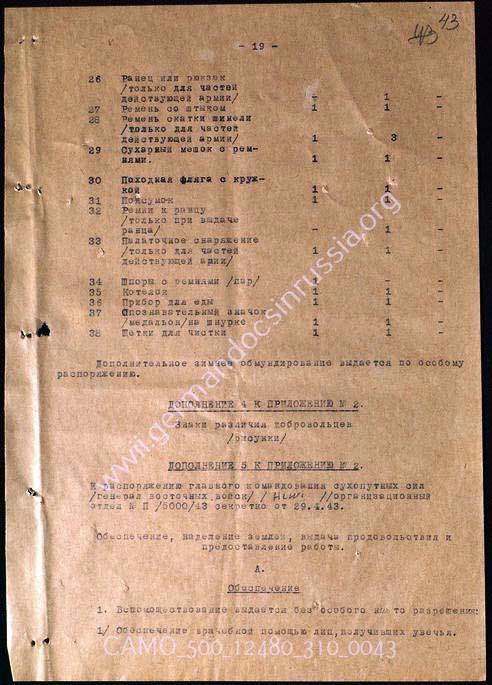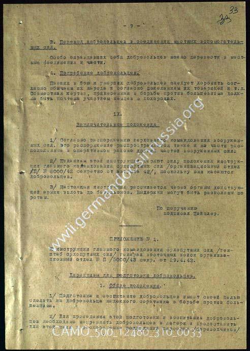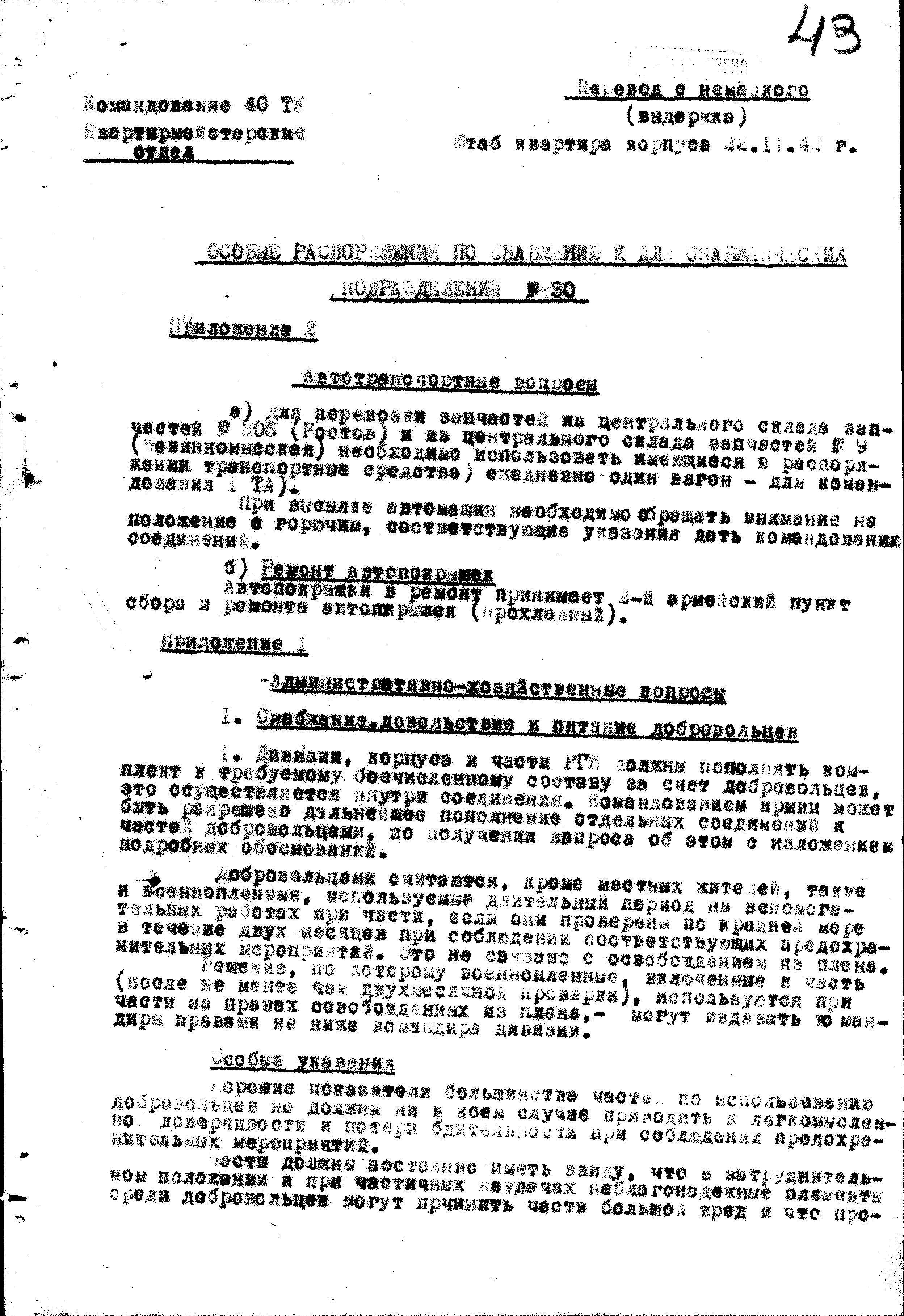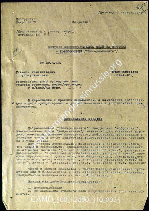 д/с: инструкция «Местные вспомогательные силы на Востоке – добровольцы (хильфсвиллиге) от 29.04.1943 г.