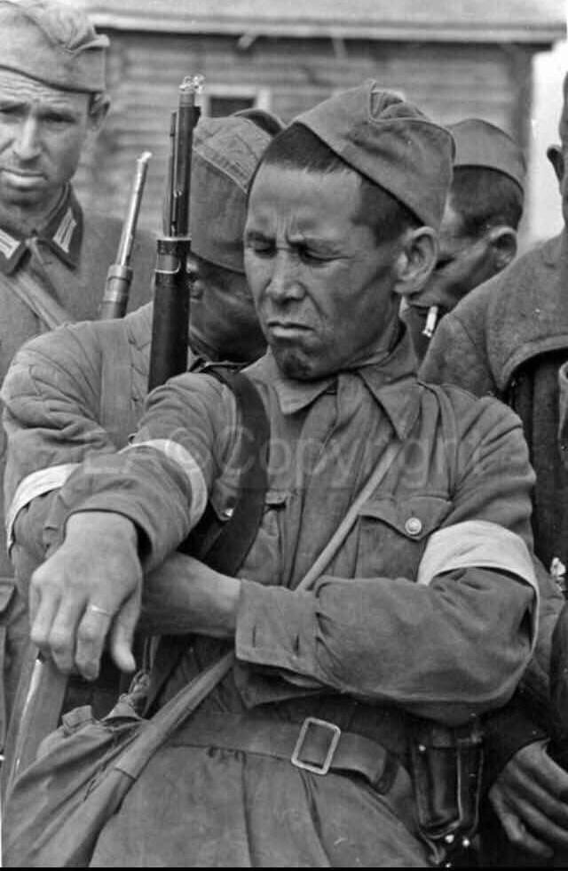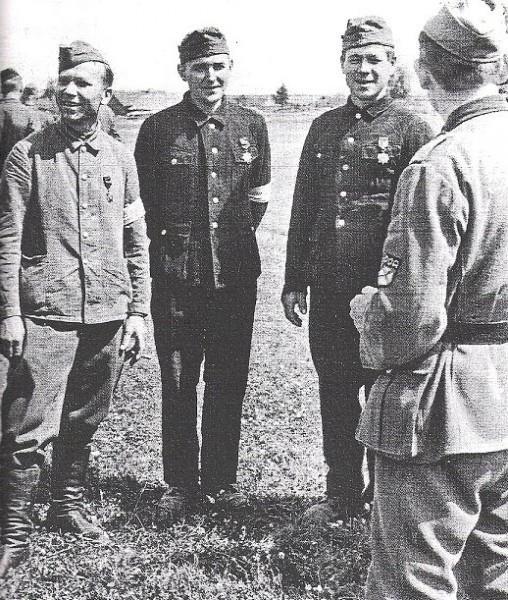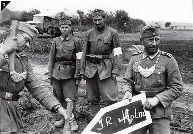 Скорее всего, фотоснимки «хиви» в немецкой форме были сделаны в более поздний период. Во всяком случае, инструкция от 29.04.1943 г. «Местные вспомогательные силы на Востоке — добровольцы (хильфсвиллиге)» предусматривала обеспечение добровольцев ношеным, отремонтированным немецким обмундированием или отдельными предметами формы (взято с сайта https://wwii.germandocsinrussia.org/ru/nodes/2105#page/26/mode/inspect/zoom/4).