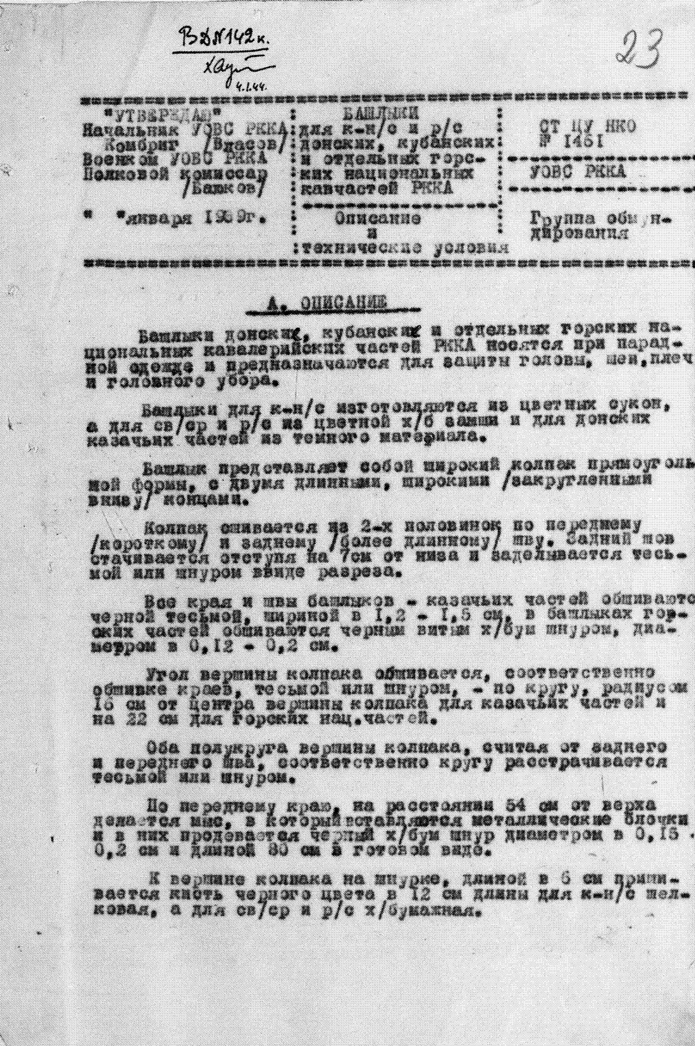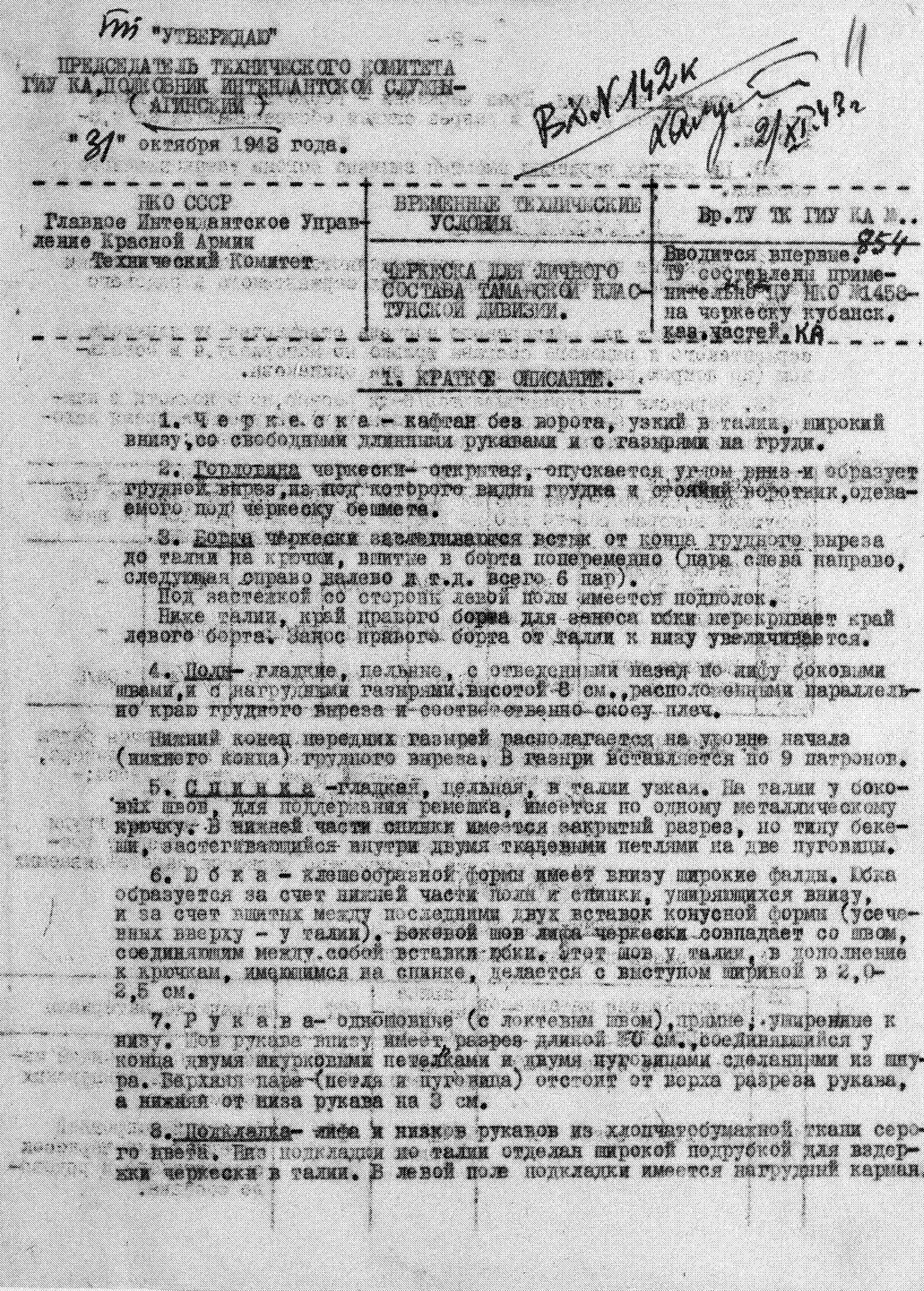 д/с: Технические условия на черкески для личного состава Таманской казачьей дивизии