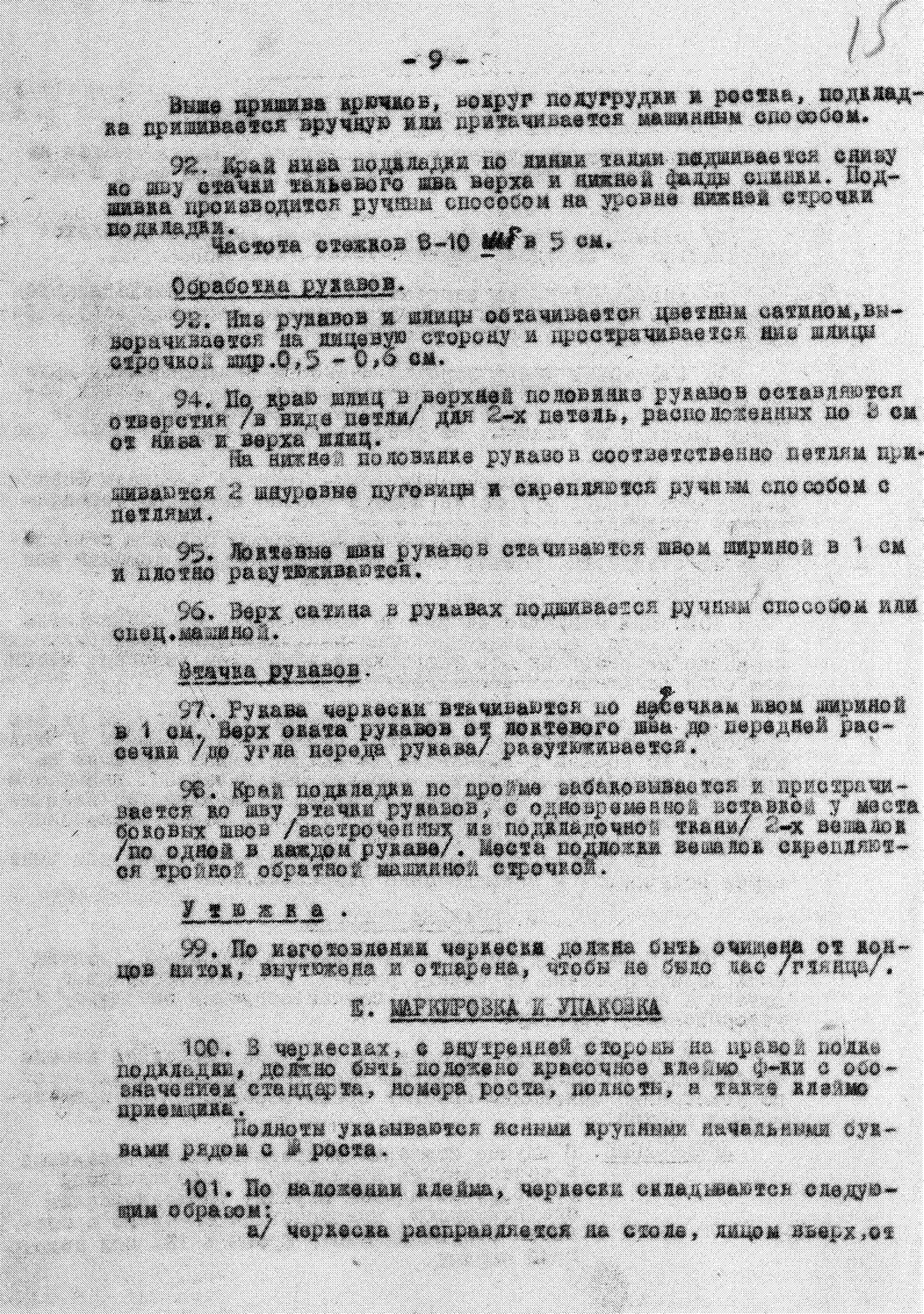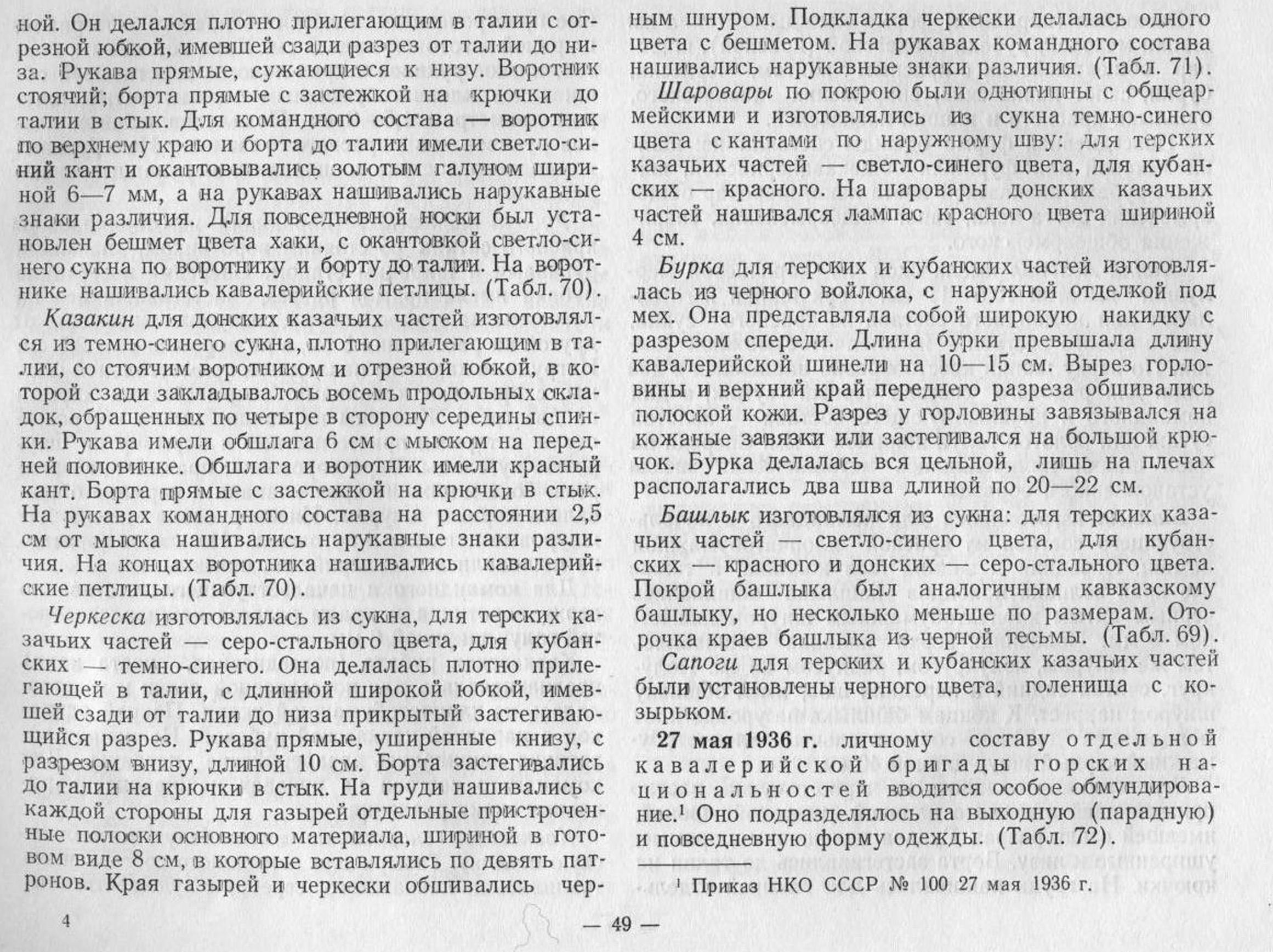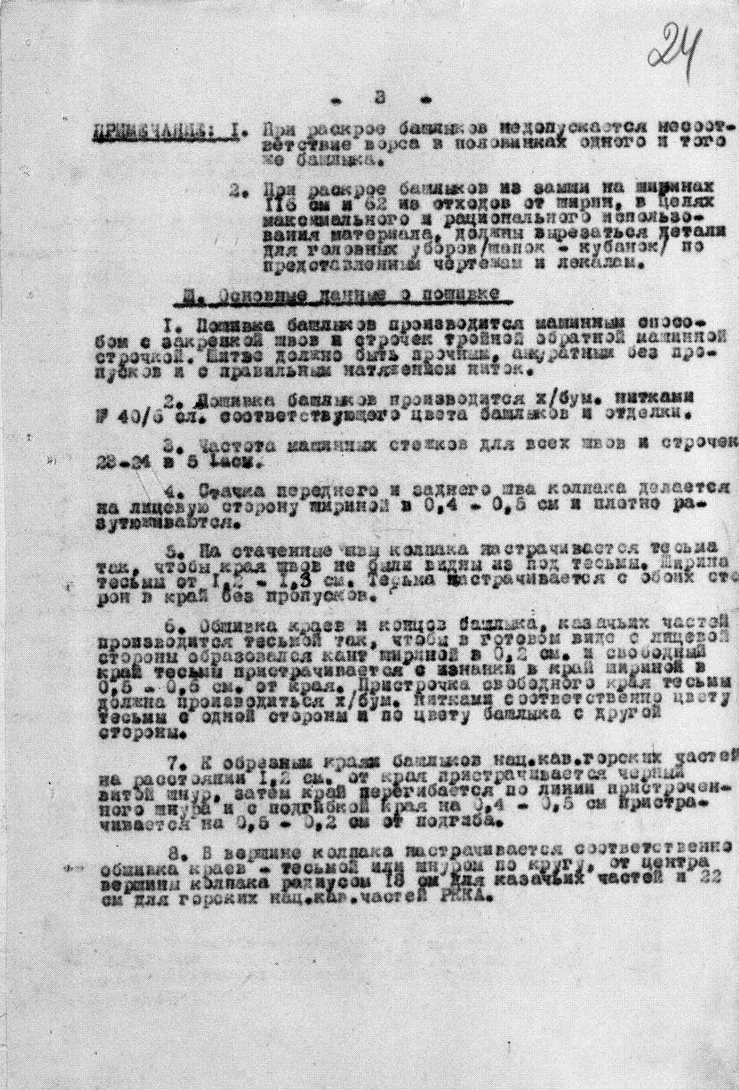 Помимо доклада, Техкомом ГИнтУ были подготовлены и технические условия на черкеску, вновь введены в действия условия на башлыки.