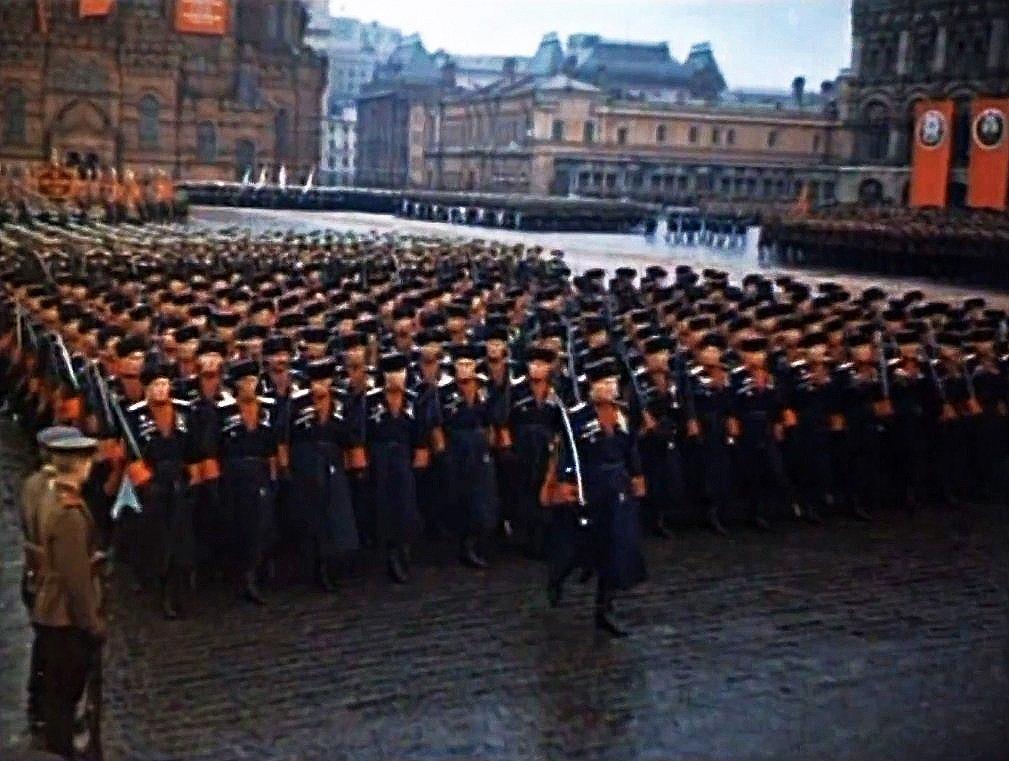 В 1943 – 1945 г.г. некоторым кавалерийским частям постепенно возвращалась традиционная казачья форма. Как Вы знаете по документальным кадрам, на Параде Победы, казачьи части участвовали в своей, особой, не похожей ни на какую другую, форме.