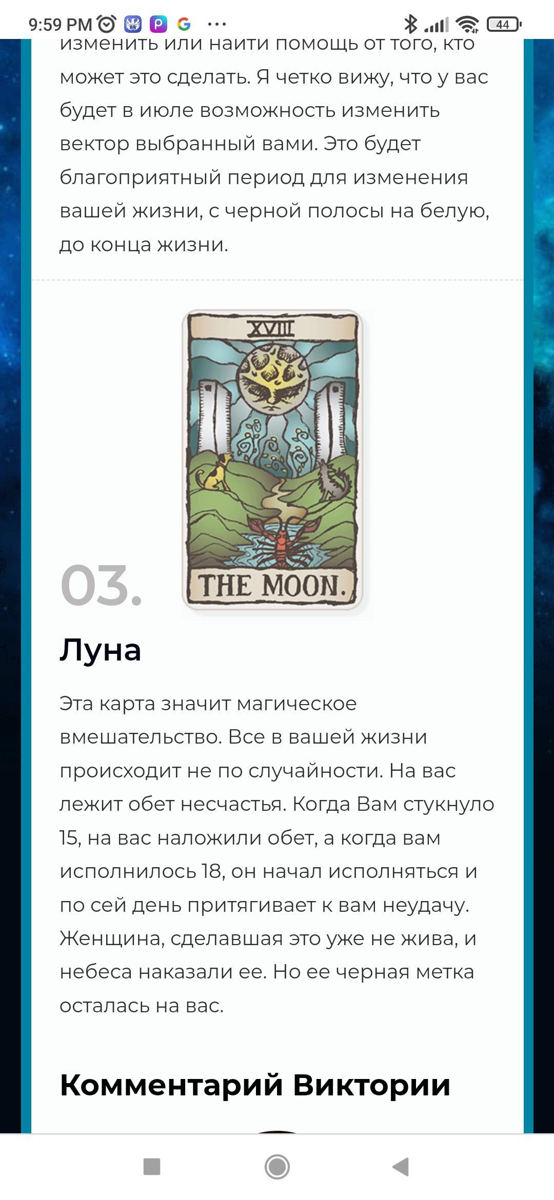 Карта Луна... В этом описании все не то. И эту карту знаю. Она ...интересная. Но тоже в настоящем описании есть и путь как при этом влиянии Пран сделать. Сами поищите и поймёте...