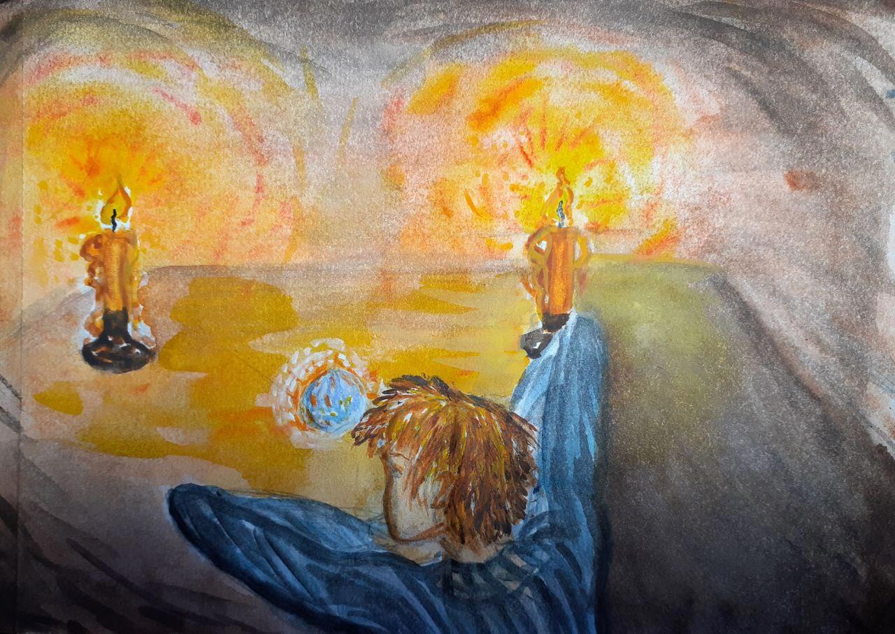 Было слишком темно. Ювелир пощёлкал пальцами, пробуждая ото сна гранатовый перстень, высекая красные язычки пламени. Разжёг две толстые свечи в грязных, покрытых пятнами воска, подсвечниках, — одну слева, другую справа от себя. Две свечи, он сам — словно три вершины треугольника, символа огня. Алмаз в центре.