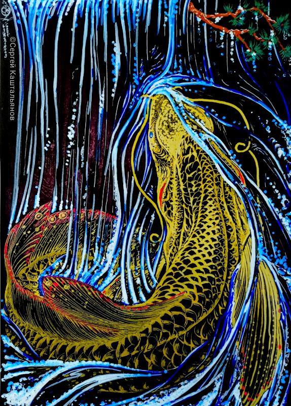 Автор: Сергей КаштальяновКарп поднявшийся по водопаду,