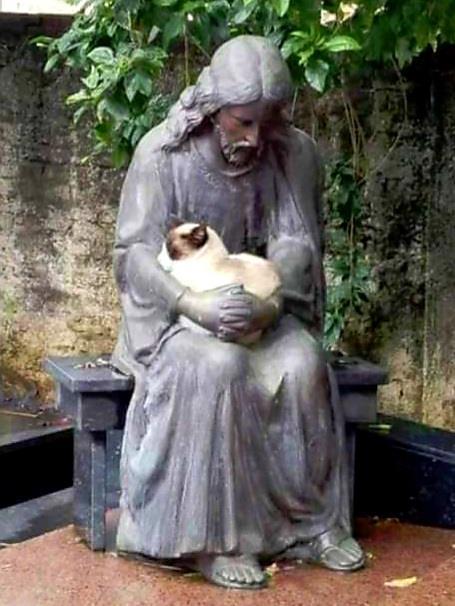 Автор: Елена ГрабовецкаяМеня зацепила эта фотография. Почему кошка примостилась на колени к Христу?