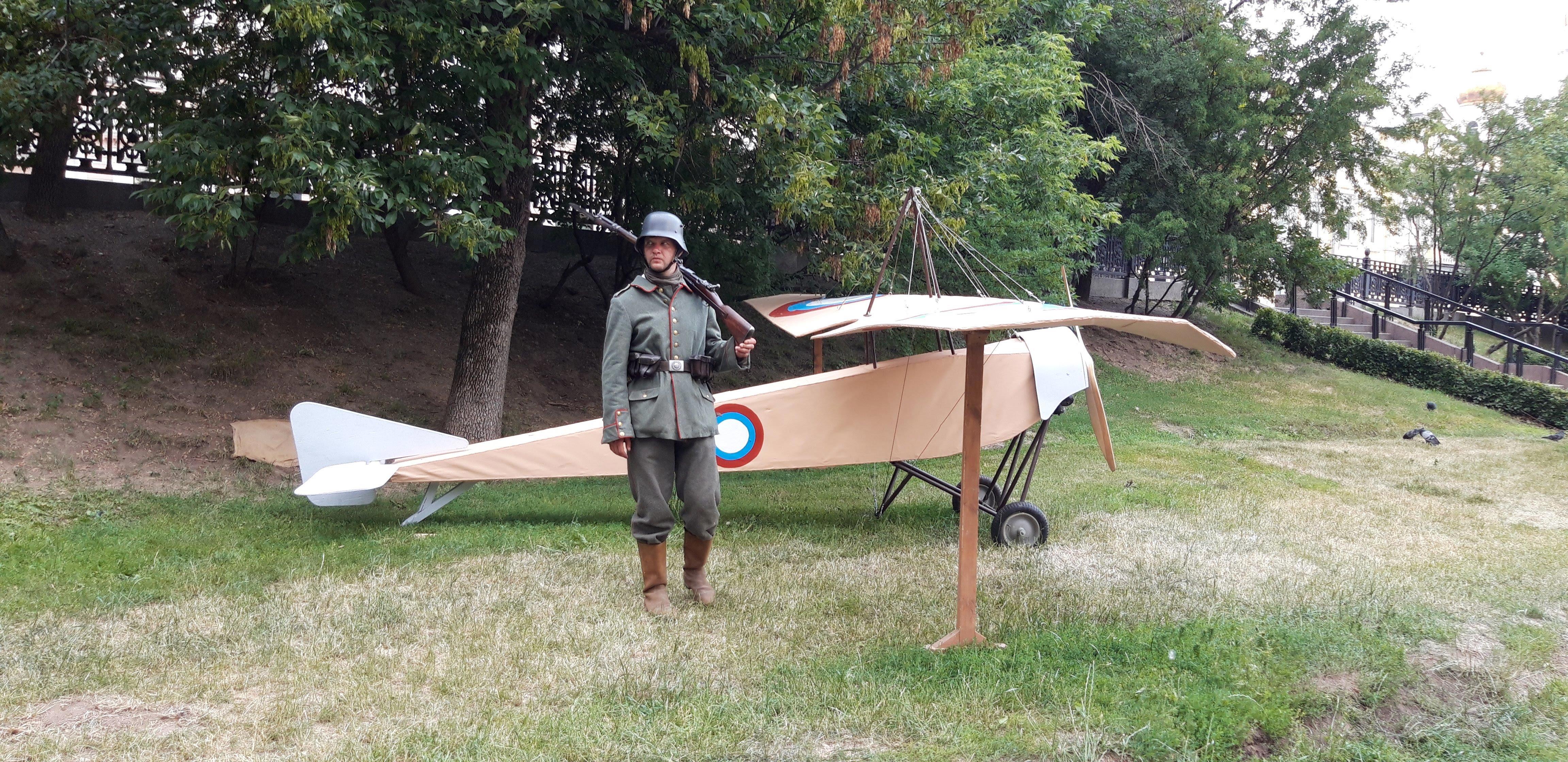 Немецкий часовой охраняет аэроплан на площадке, расположенной неподалёку от храма Христа Спасителя: