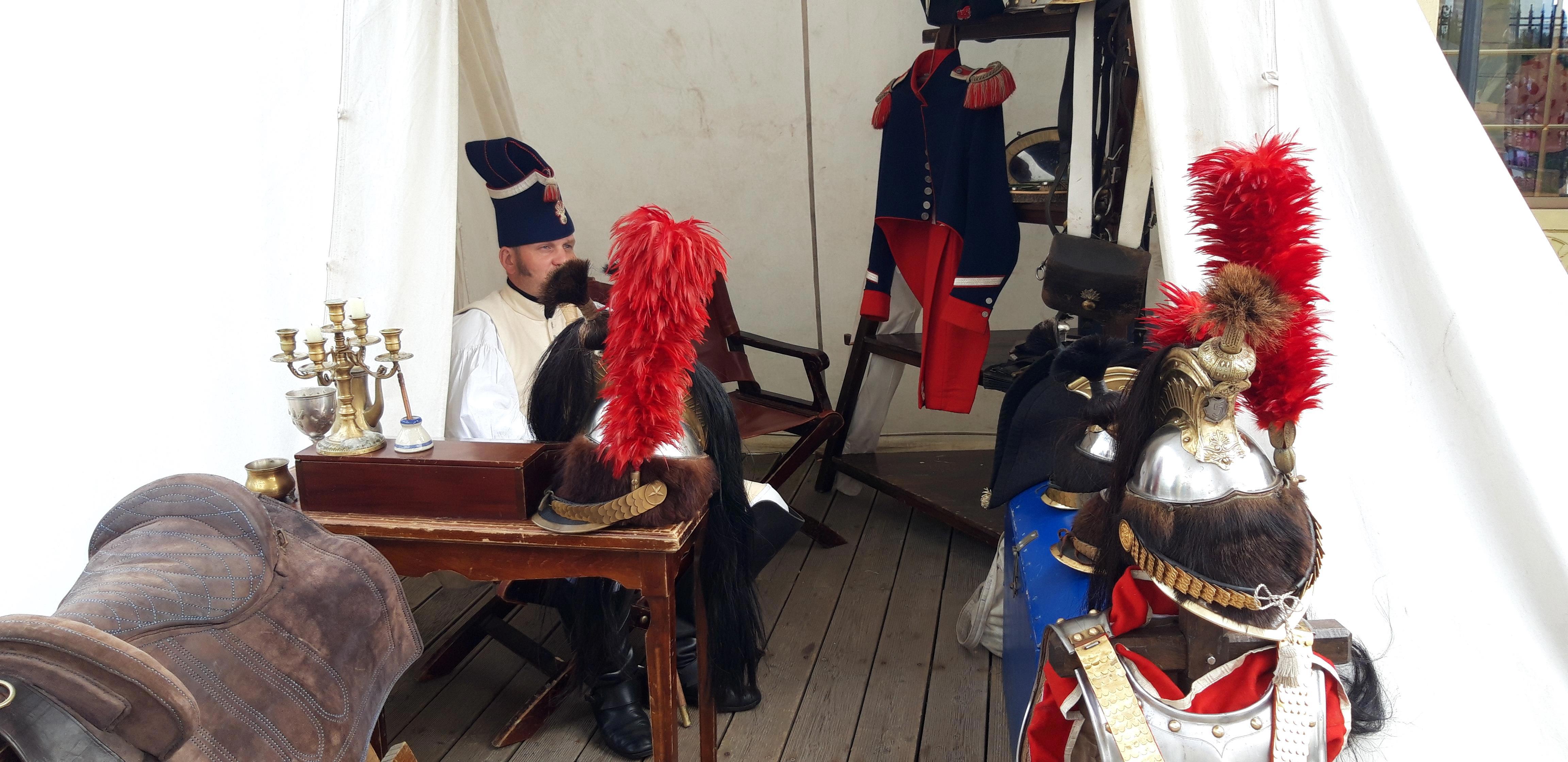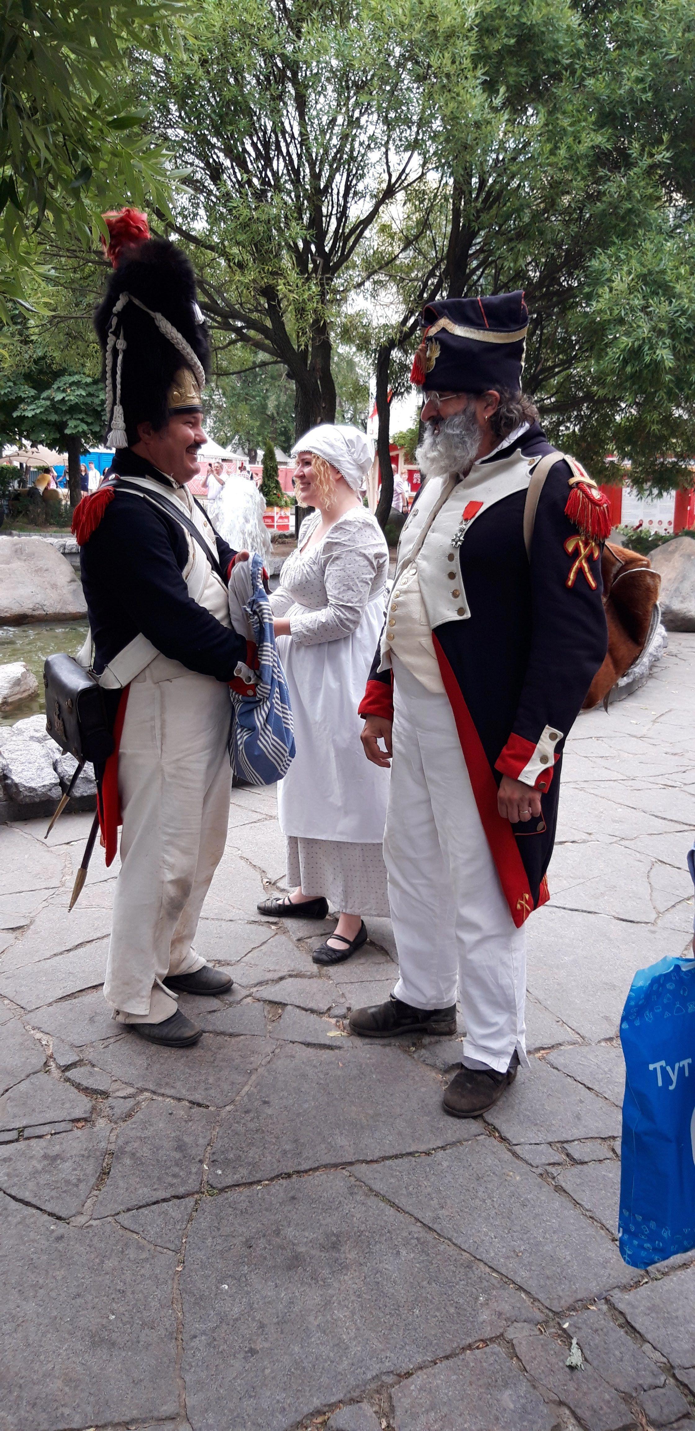 Немного фото из 2018 г. В тот раз тоже были иностранные реконструкторы. Насколько помню, иностранную речь можно было услышать только на площадке, посвящённой наполеоновским войнам. Обладателям меховых шапок, в 30-градусную жару - не позавидуешь. А сам воин, жару словно и не замечает: