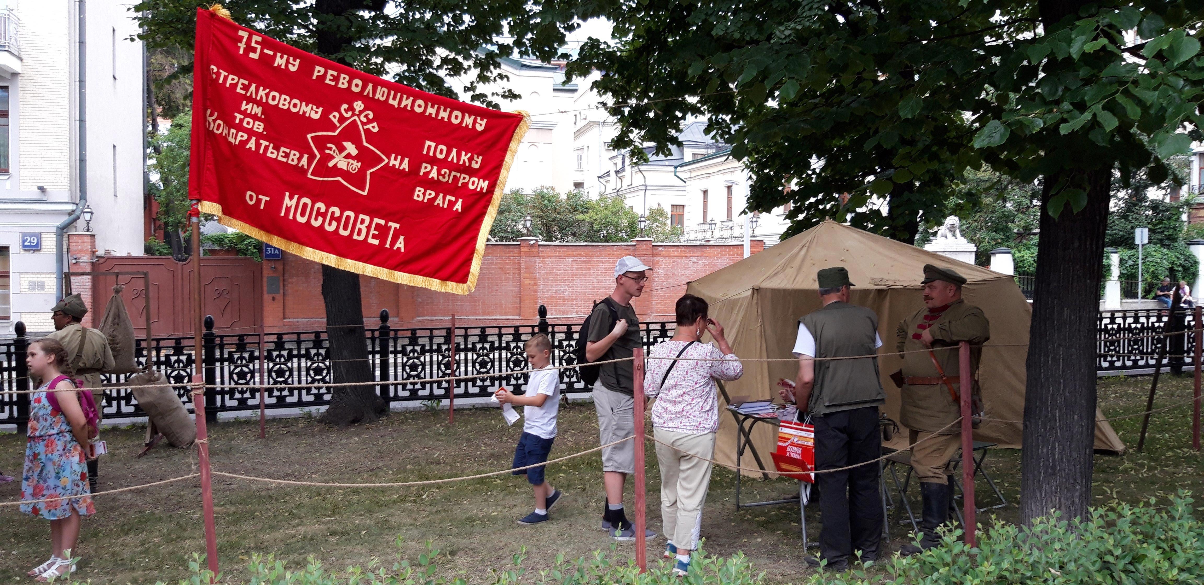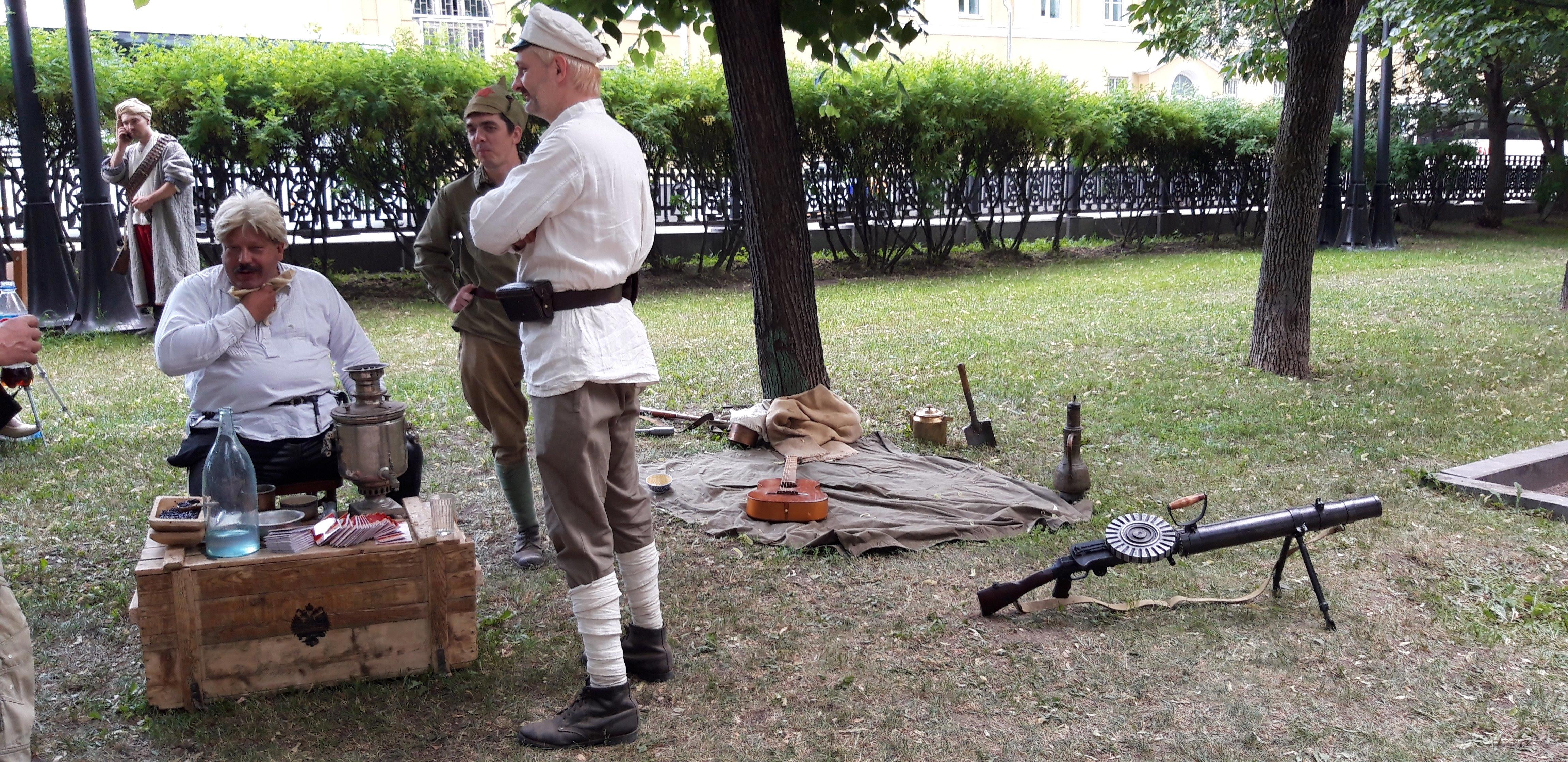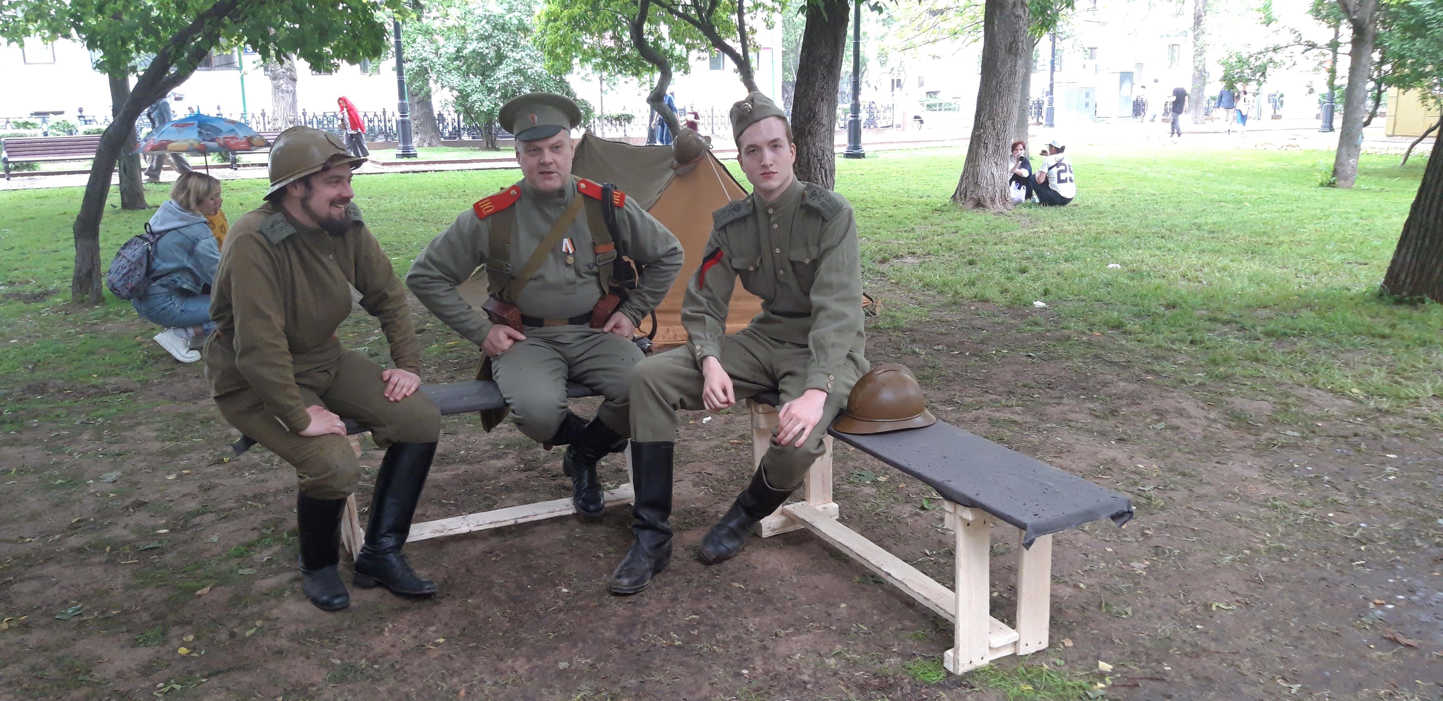На Чистых прудах атмосфера Первой Мировой. Солдаты Русского экспедиционного корпуса во Франции отдыхают и отвечают на вопросы: