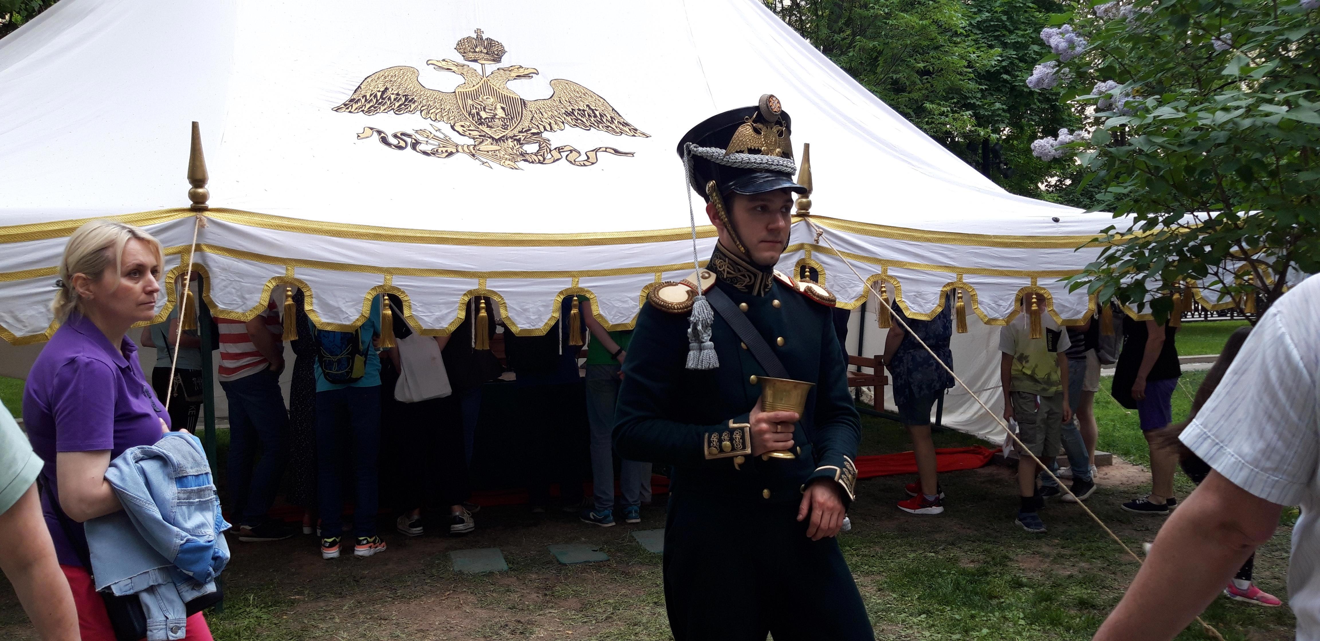 Возле Императорского шатра, зрителей встречает офицер Гвардейского Экипажа. Кубок в его руках источал дурманящий запах ароматного "чая":